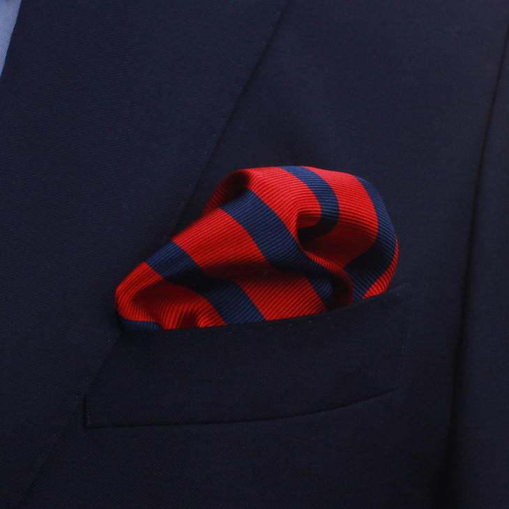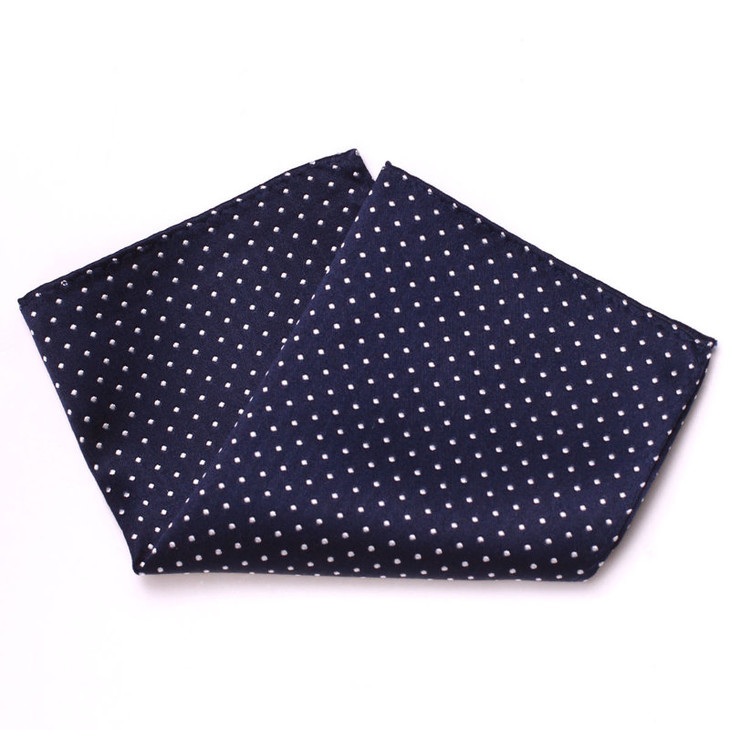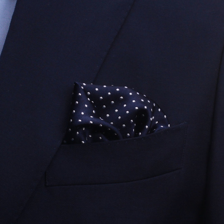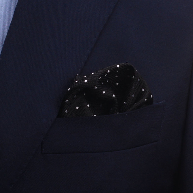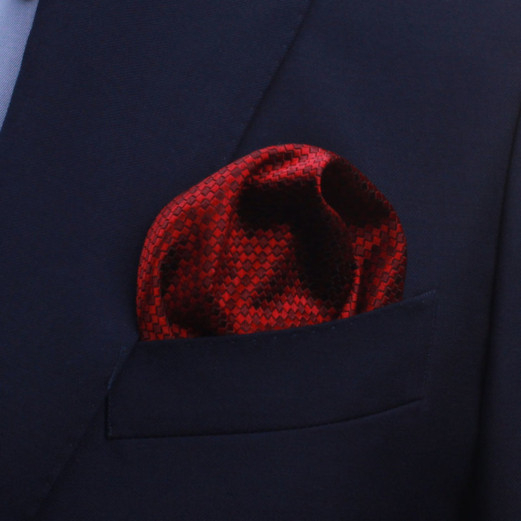 本款胸袋巾属于机缝款。色织面料较印花真丝面料要厚一些。花色繁多,与各色领带搭配,彰显绅士魅力。