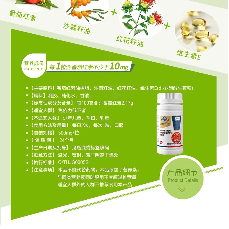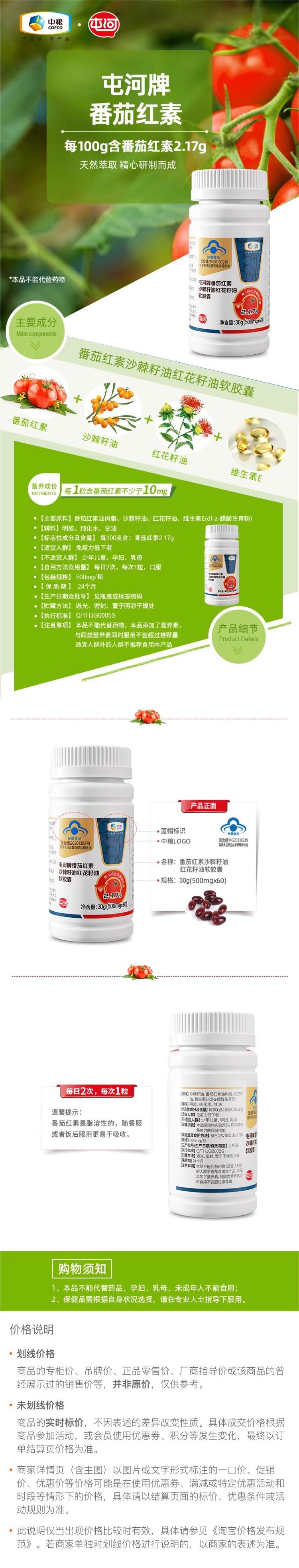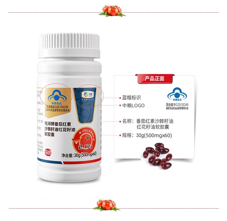中粮屯河 番茄红素软胶囊 新疆番茄产区 天然番茄红素复配沙棘籽油 特制瓶 500mg/粒*60粒