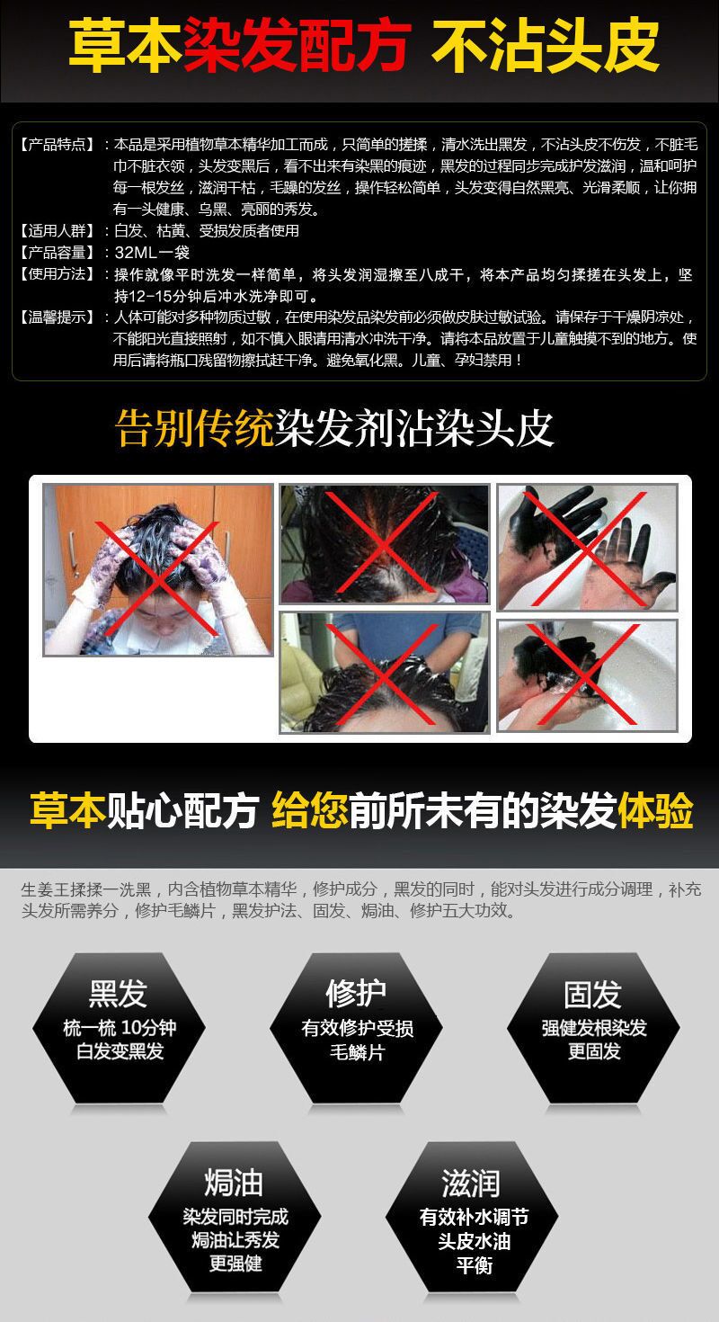 轻轻松松就能洗出黑发?这款魅赞5袋黑色染发剂真的可以直接封神!采用草本植物精华加工而成,成分温和到妈见爱系列。操作就像平时洗发一样简单,而且上色快且持久,在有效染发的同时还能有效修护受损毛鳞片,强健发根,焗油护发染发,做到三效合一。哪怕是白发苍苍也能让你的头发瞬间乌黑亮泽,男女老少都适用。