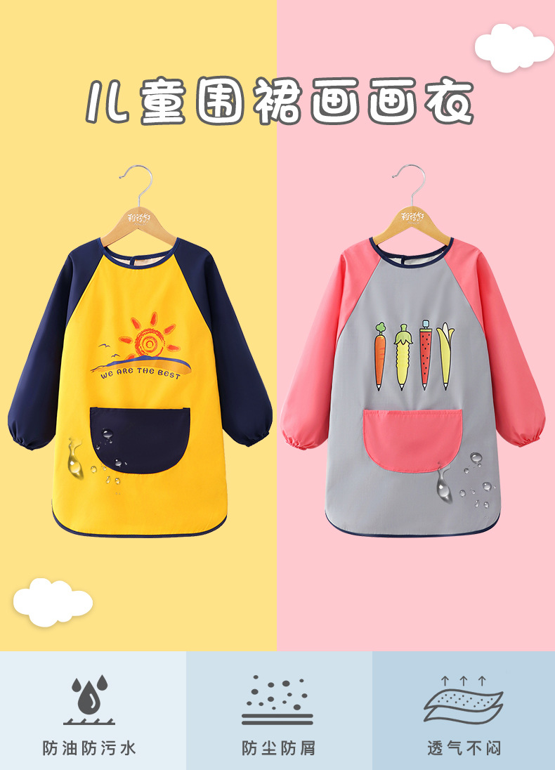 【防水防油 透气不闷】罩衣儿童防水画画衣幼儿园印制罩衣画室印字防水反穿衣男女 童围裙