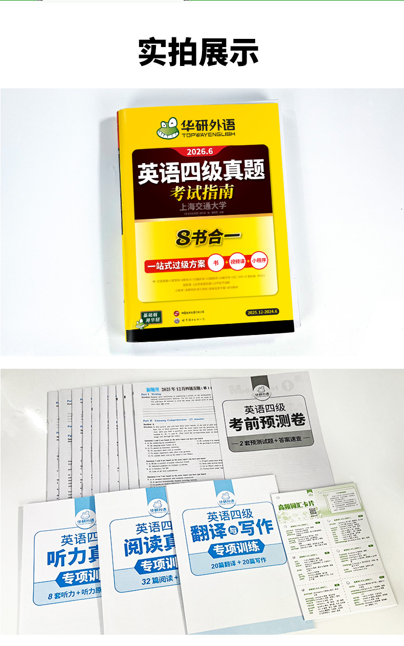 6. 八书合一,快速提分,同步突破听力+阅读+翻译+写作+真题+预测+词汇+口语考试;