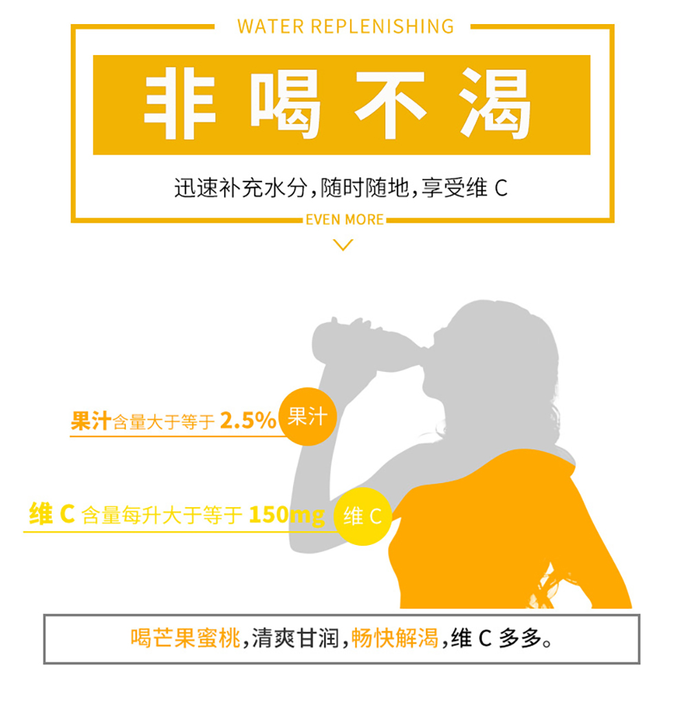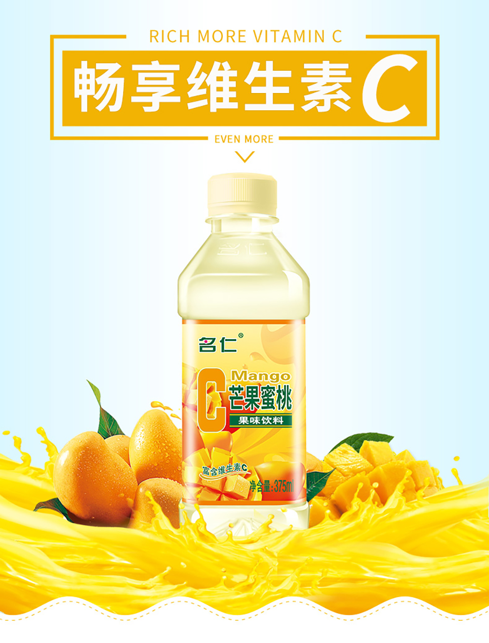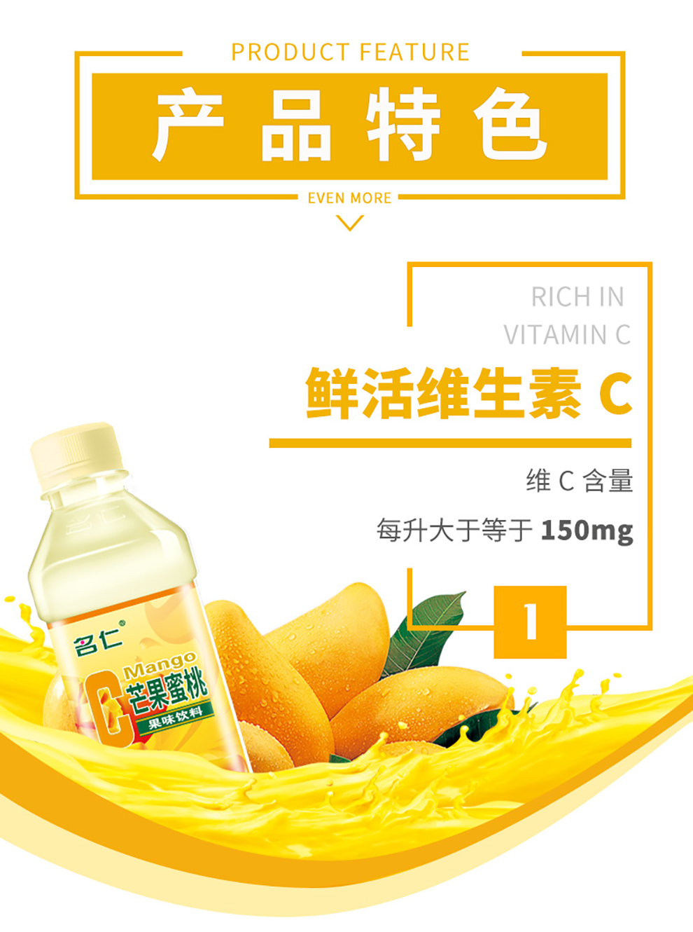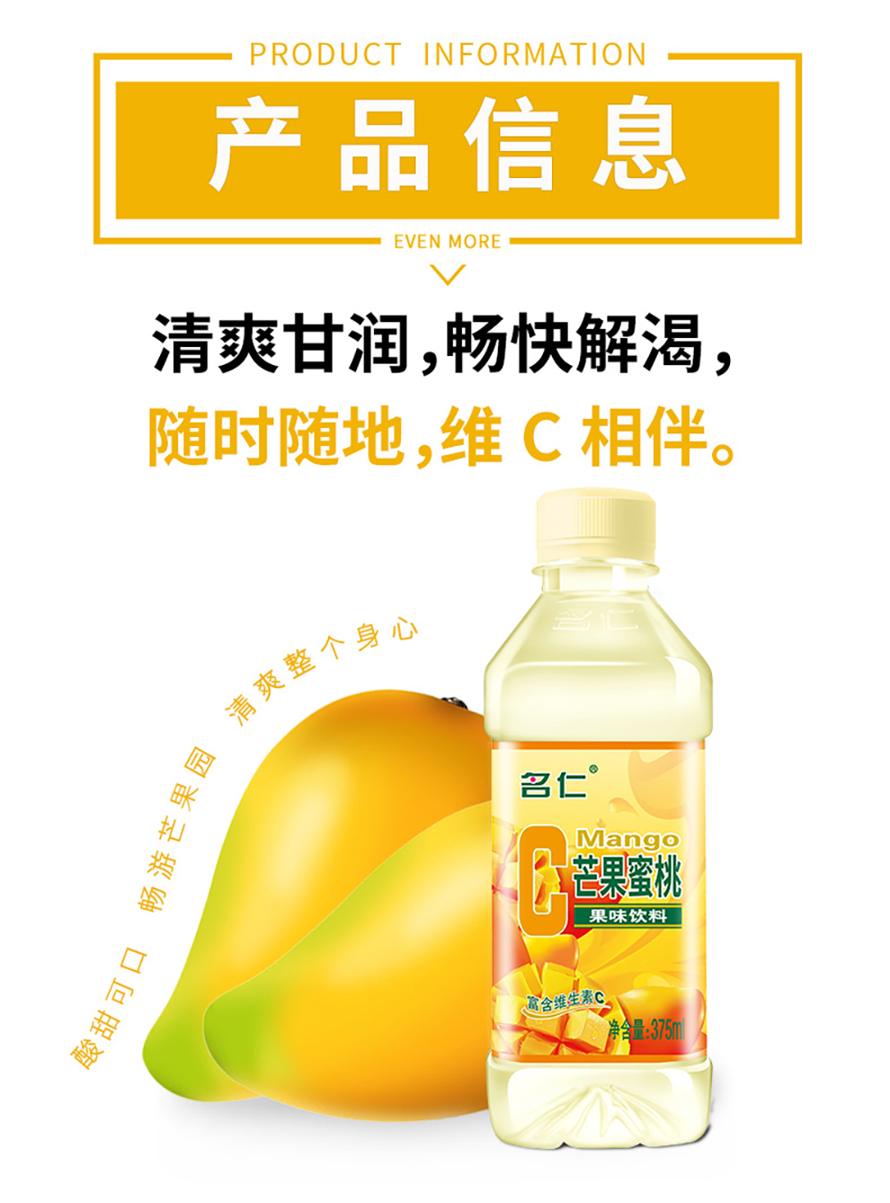 【富含维生素C】名仁C芒果蜜桃饮料24瓶装整箱批发芒果味饮料