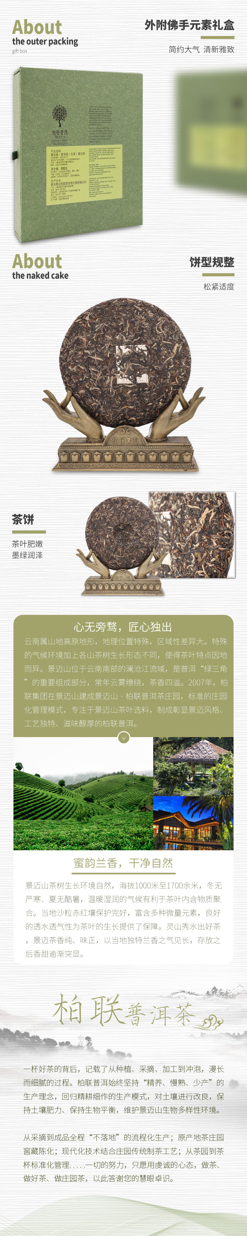 柏联普洱 2018年 景迈香 普洱茶生茶饼茶生普茶饼单抽拉礼盒装500g