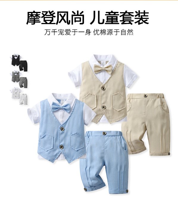 【英伦西服男童2件套】夏装宝宝衣服夏季绅士礼服周岁儿童套装