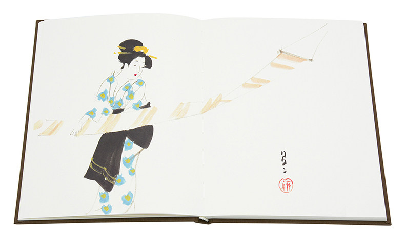 《晚春感伤》是绍兴张从阳老师收藏的竹久梦二设色写意册页真迹,原件共有二十三开,其中二十二开为竹久所擅长的仕女图,只有一开画的是小男孩。我们依照原样复制了一批册页(点击进入)。为让更多的同学分享这一册页,我们又做了这款Notebook。