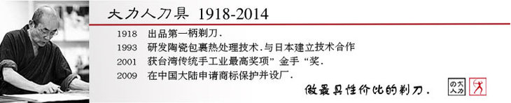 大力人剃刀 :系世界三大品牌之一, 由LeeBen设计,是大力人最早期的手工产品,是大力人最经典不可缺少的系列。在漫长的岁月中,它仍然完整保存了四十年前的手工工艺,他的特点是使用世界独有的刀蜡保持长期锋利.在欧美低碳环保的潮流下使人们重新拿出老式剃刀成为时尚.也让大力人刀具获得新的使命.