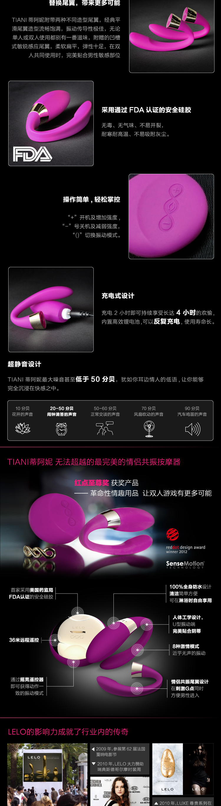 瑞典LELO 蒂阿妮Tiani二代 官方全国统一售价1380元。LELO公司新政策不允许LELO正规渠道经销商以任何形式促销(包括VIP价格和限时折扣)为了新老客户购物开心,凡在本店购买本品即可获赠: