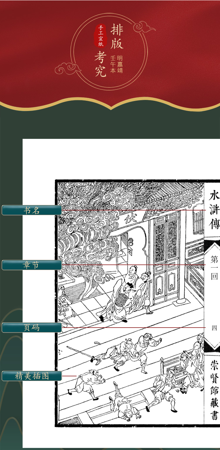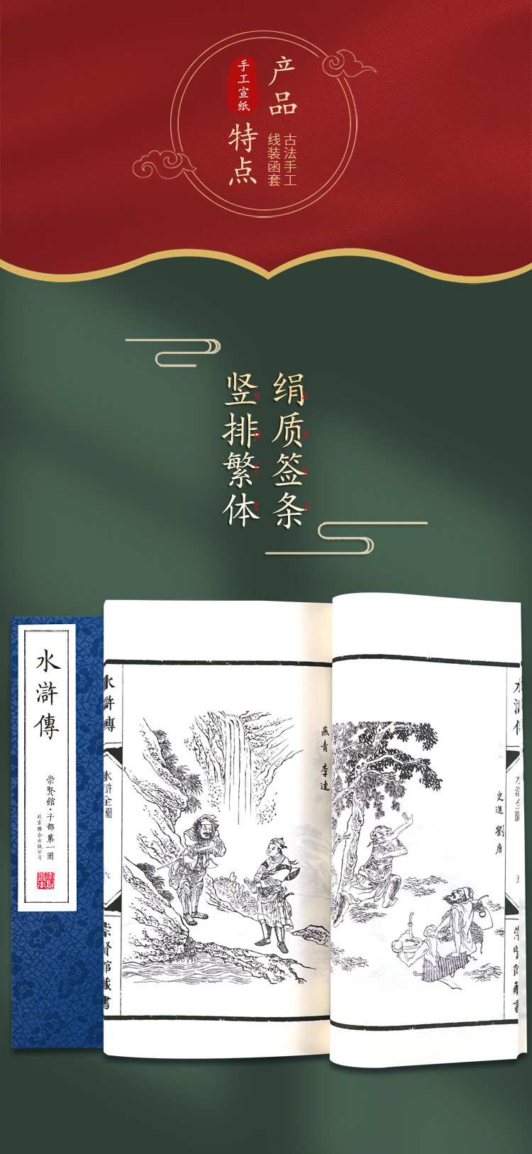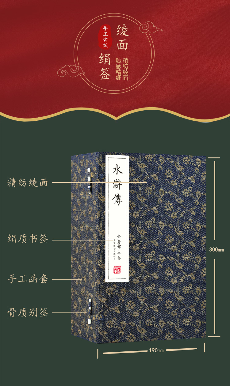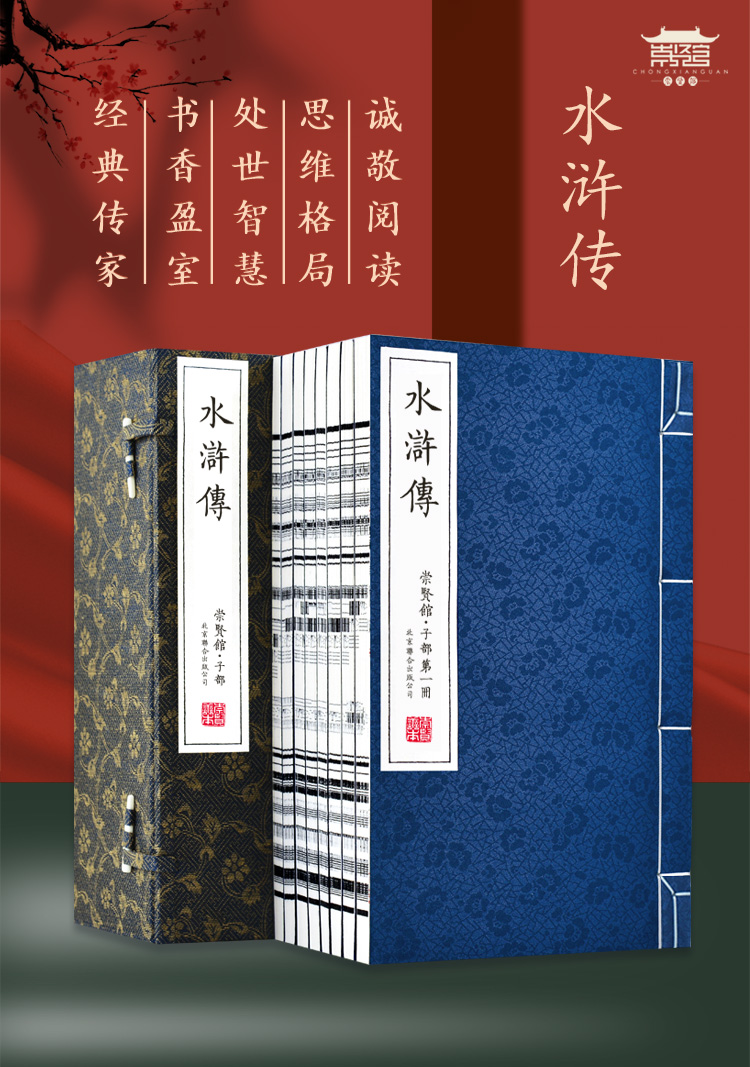正版包邮 崇贤善本系列四大名著《水浒传》无删减足本全本 手工宣纸线装繁体竖排(一函八册)