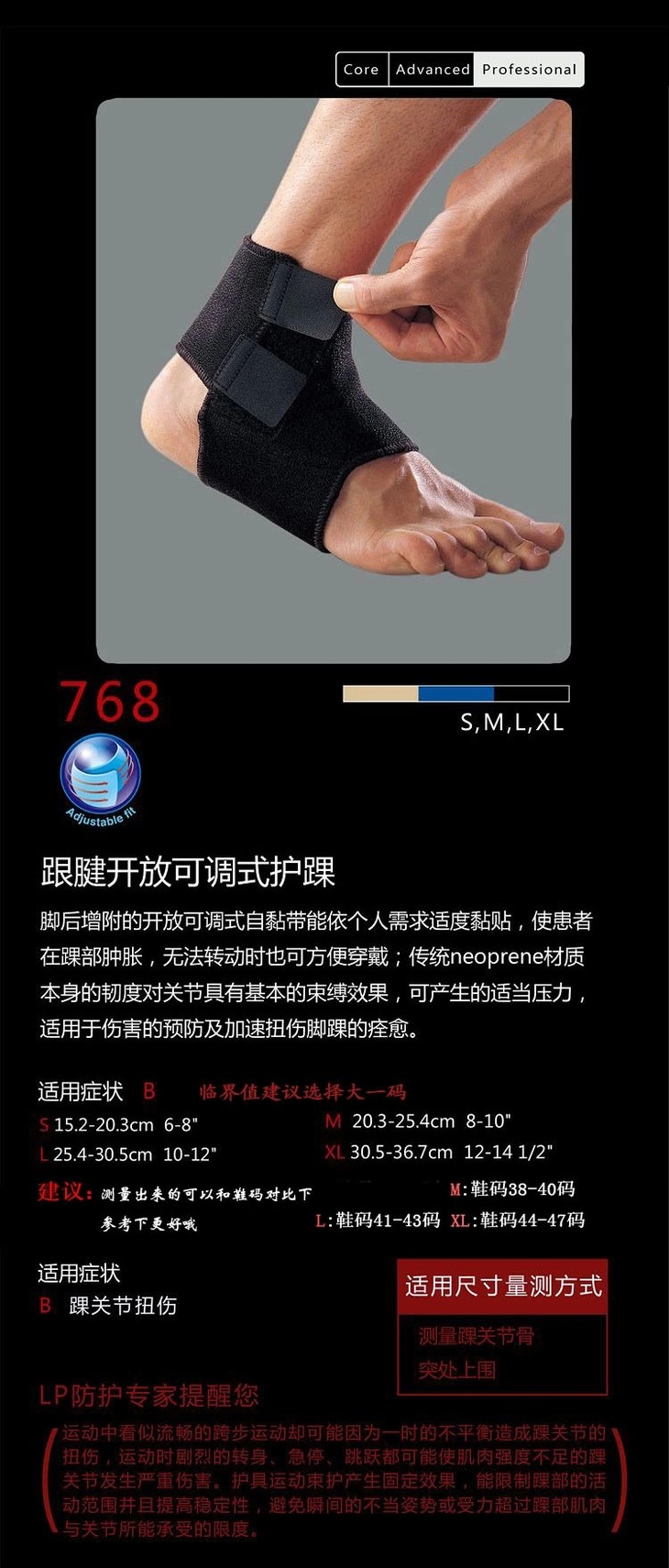 名称: LP768 跟腱开放可调式护踝
