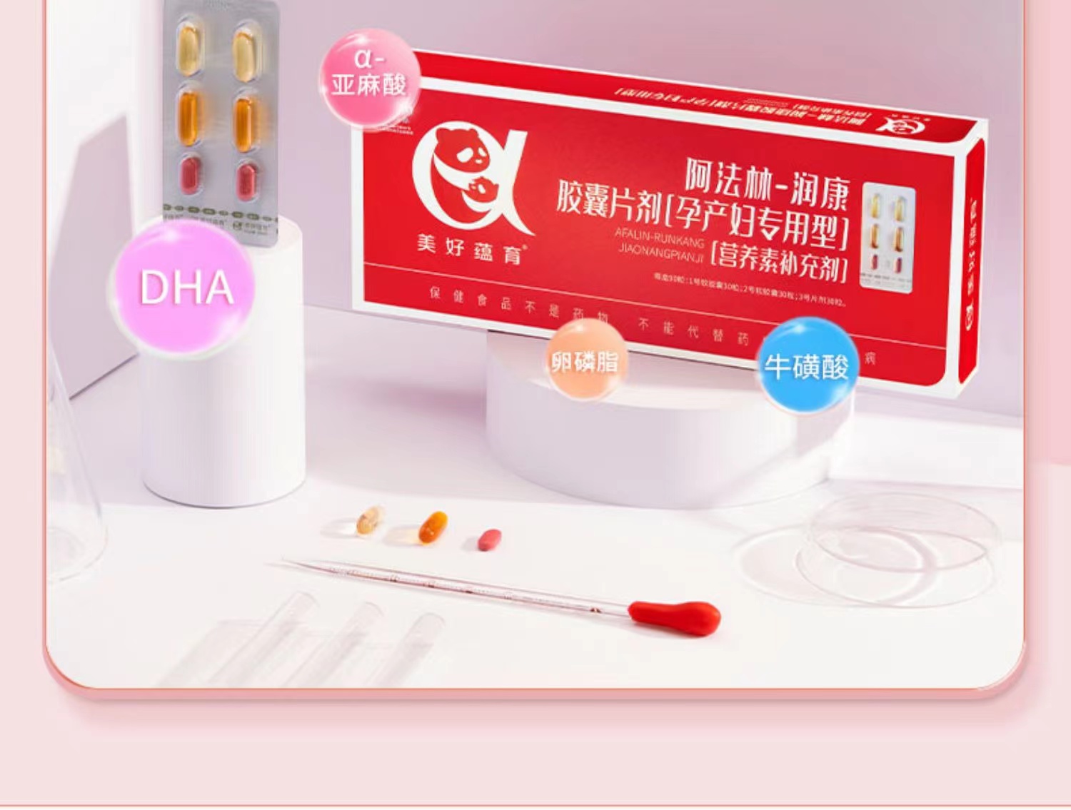 阿法林·润康胶囊片剂,亚麻酸DHA孕妇宝妈专用、牛磺酸、铁锌、多种维生素,备孕期-哺乳期