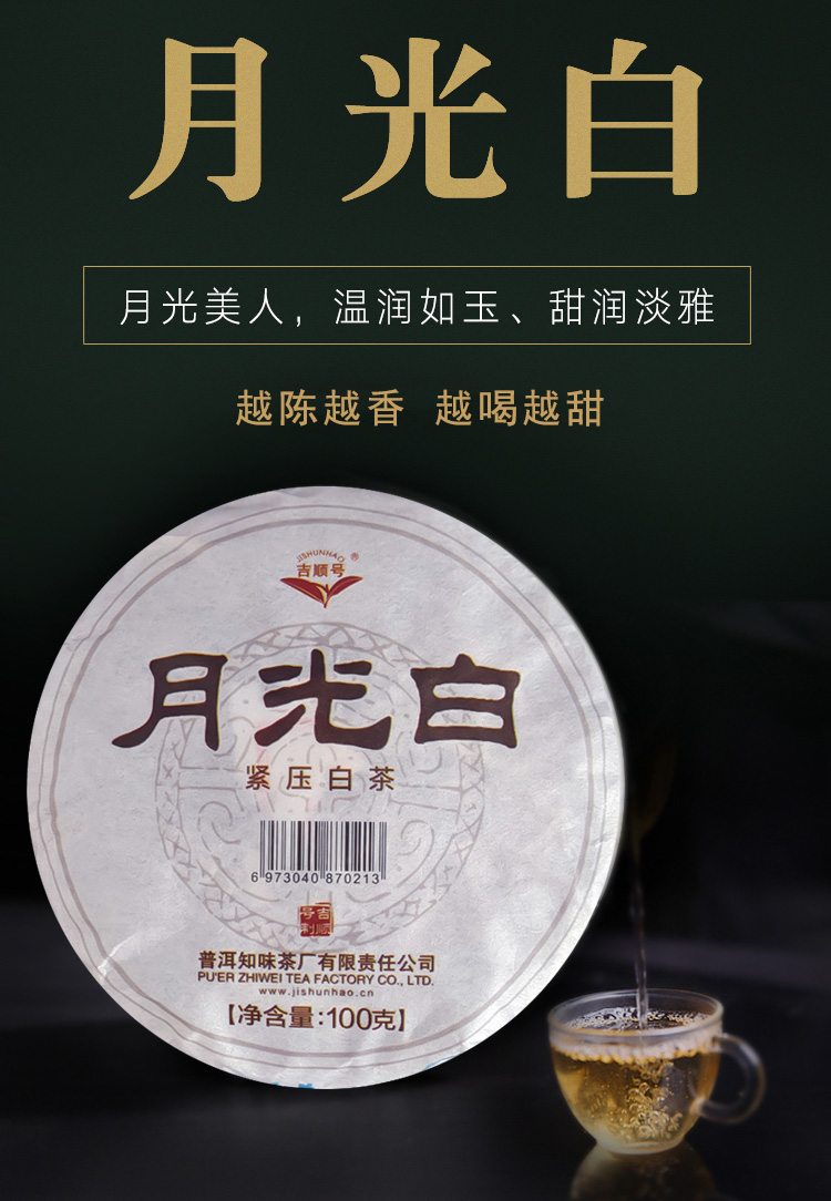 吉顺号云南月光白茶饼 100g/饼