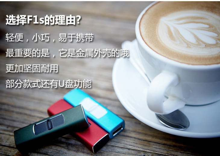 跃活F1s系列充电打火机是一款使用电热丝加热点烟的打火机。相比F1,F1s是铝镁合金外壳,而F1是塑料外壳;相比F2,F2的做工更为精湛,但F1s的尺寸更为小巧。