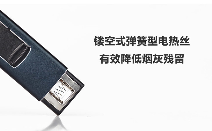 外壳采用铝镁合金打造,轻便但坚固;外壳表面经过阳极氧化处理,不掉漆、不褪色;内置300mA可充电锂电池,满电后可点烟2~3包;电热丝采用全球首创镂空式设计,将点烟后烟灰、烟油的残留降到最低;弹簧型电热丝相比同类电热丝,发热更快更均匀,同时也更加经久耐用!