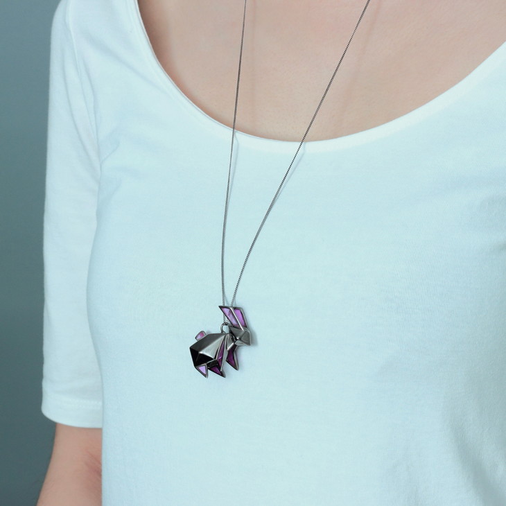 qwe|Origami-枪灰色折纸小兔王 项链(大号)[法国设计师]