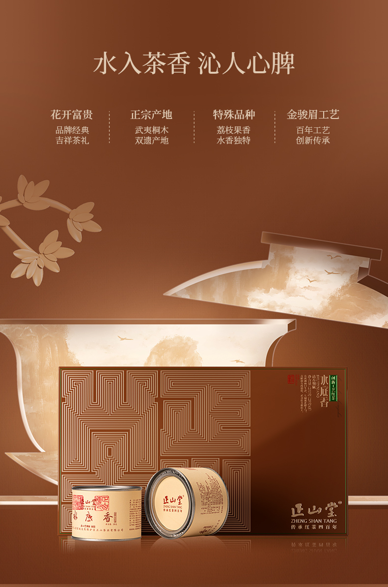 正山堂 水底香花开富贵礼盒200g 正山小种特级红茶茶叶送礼