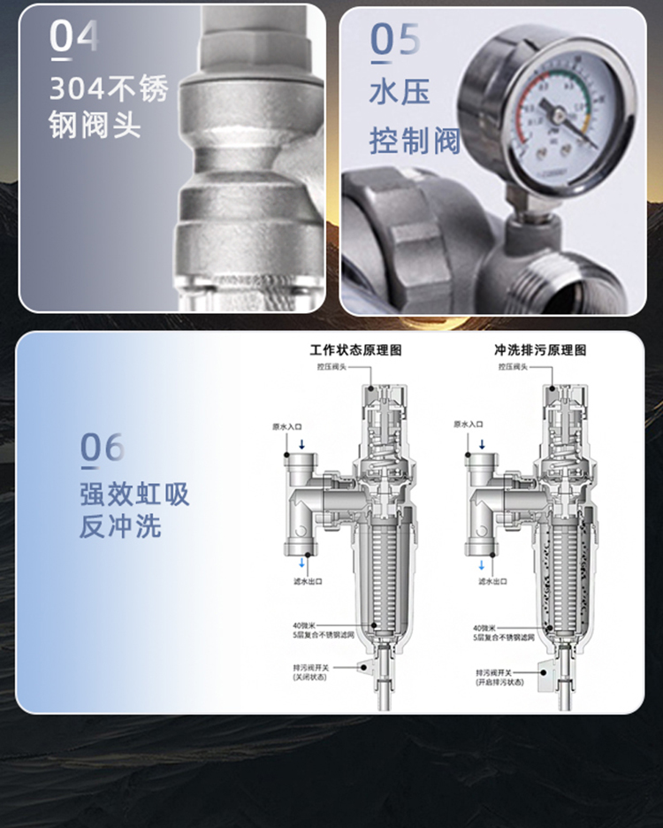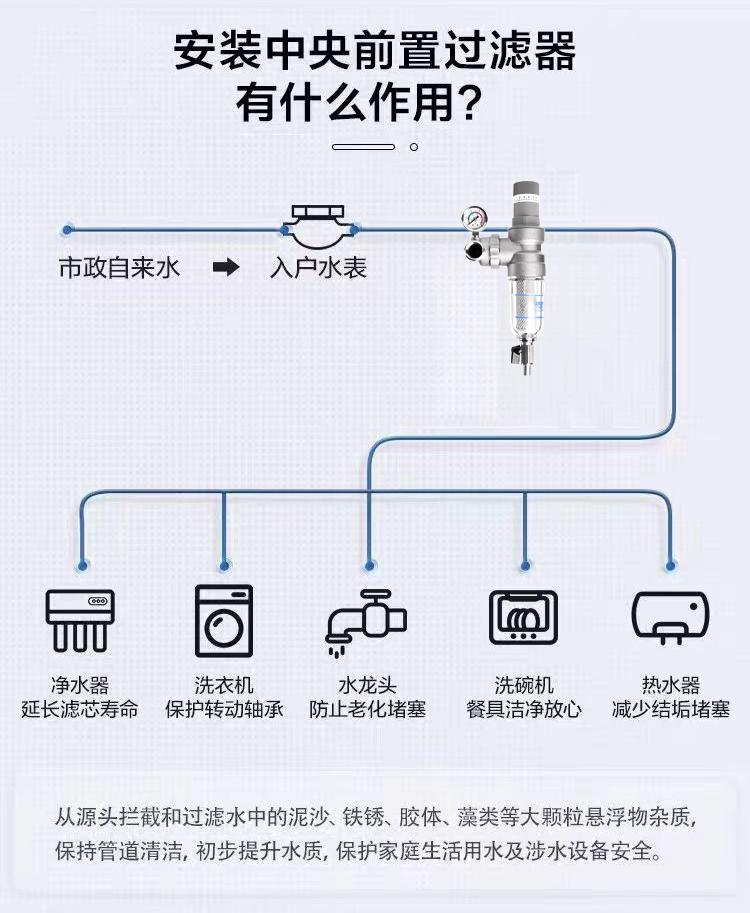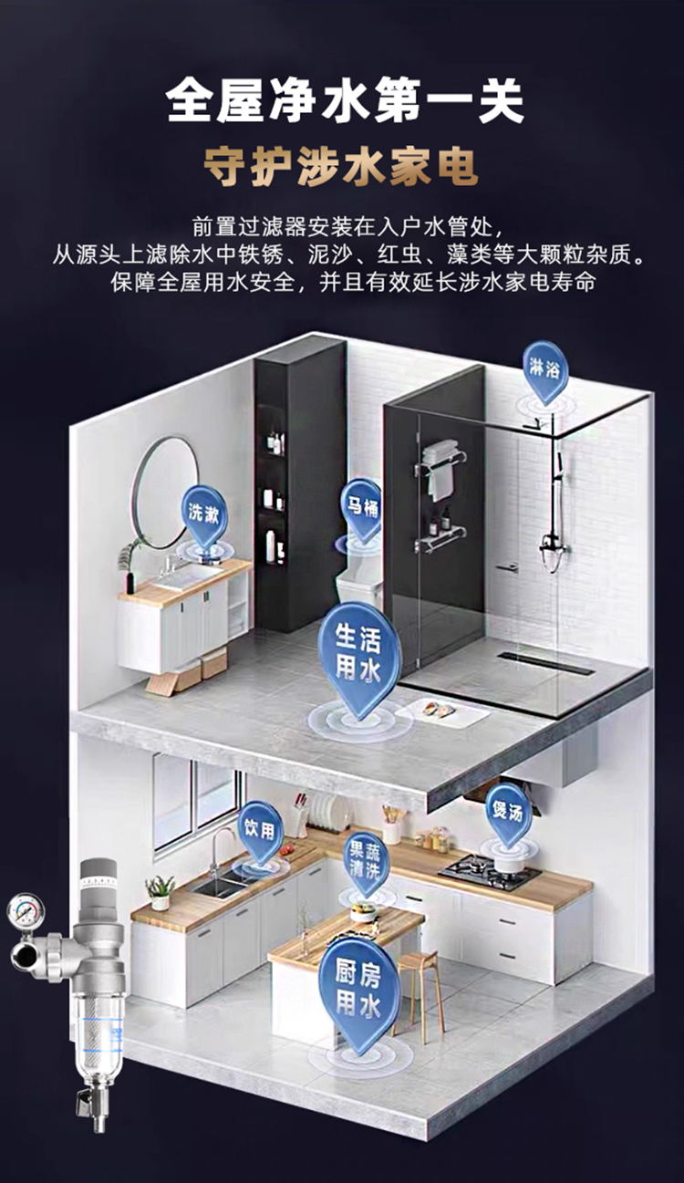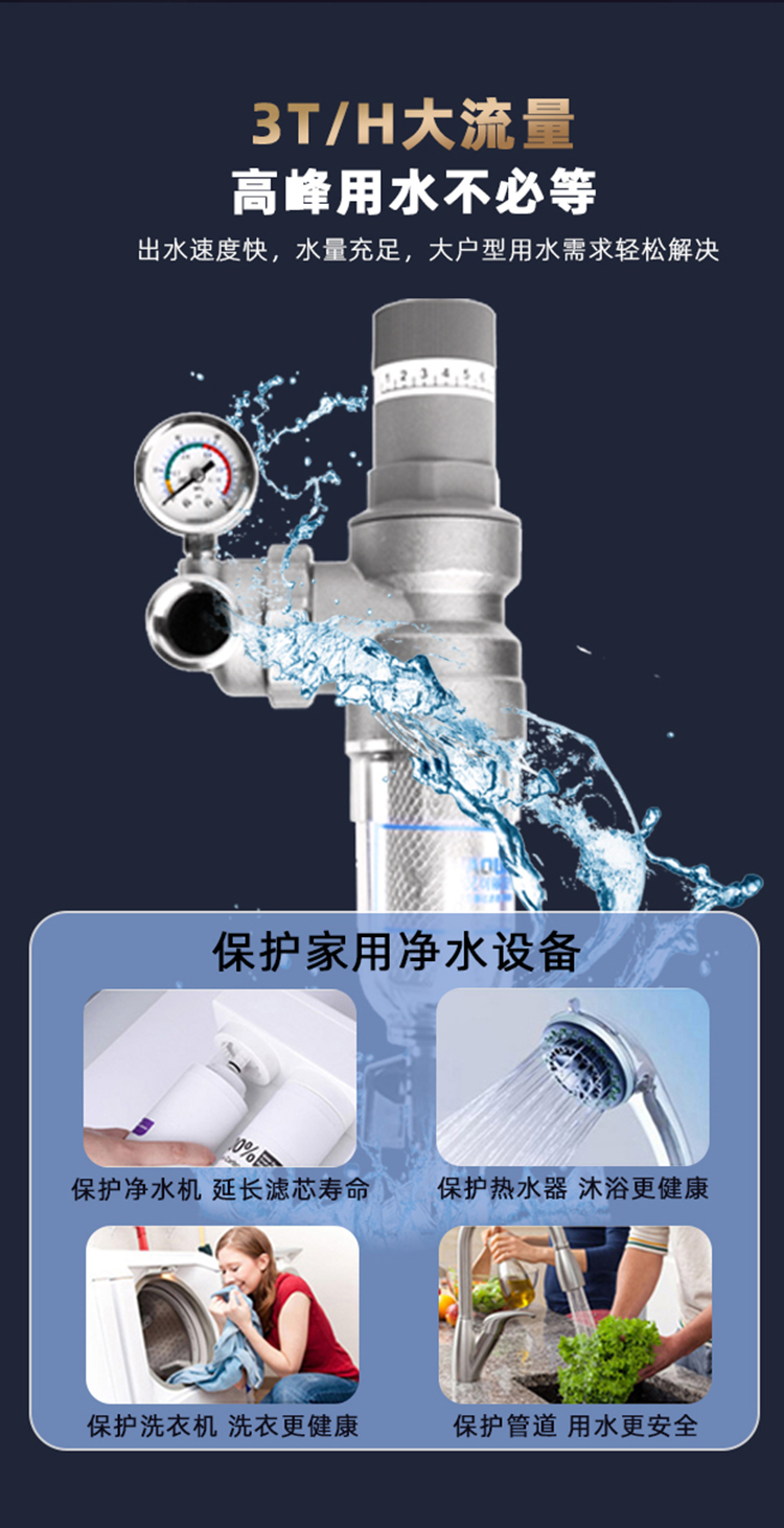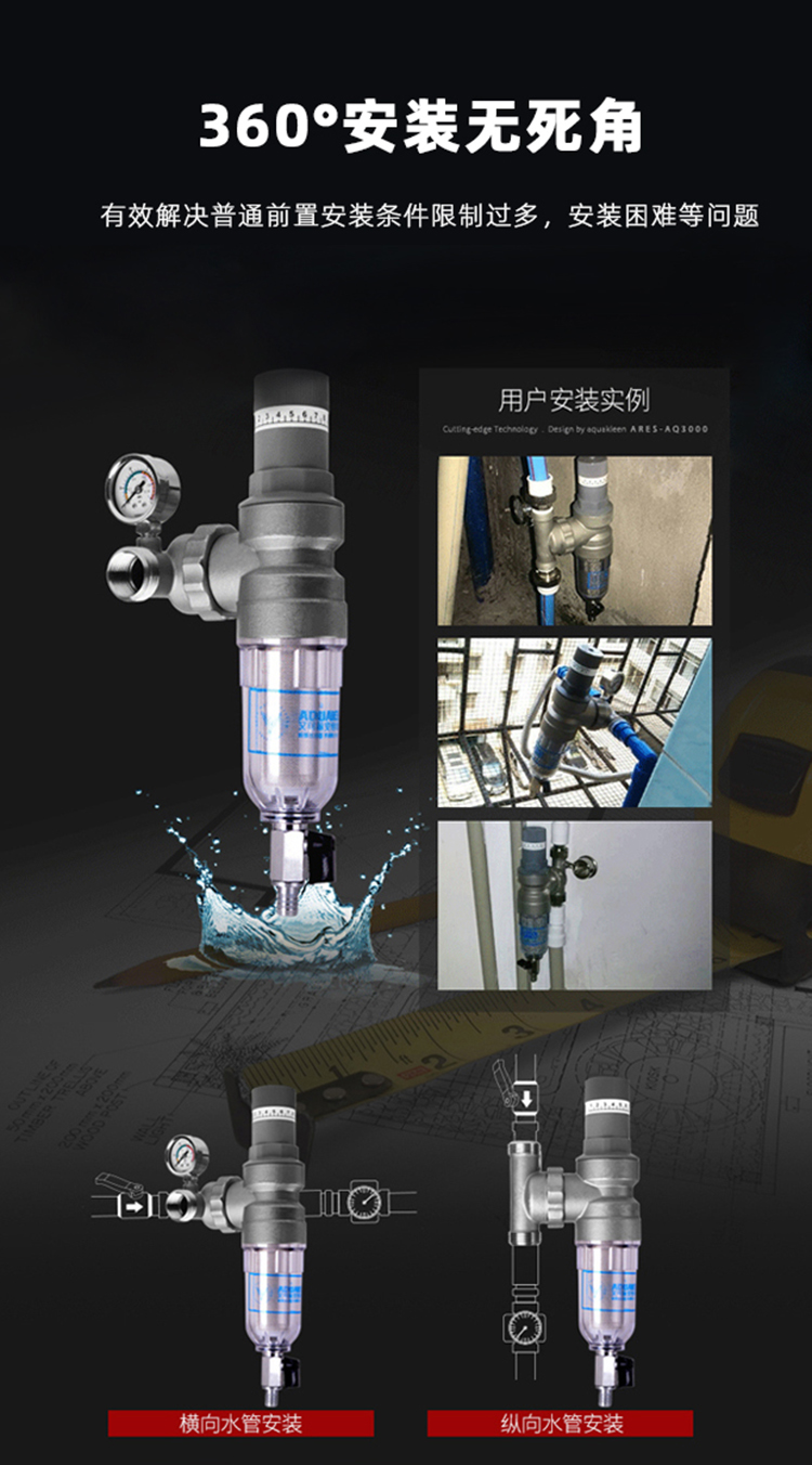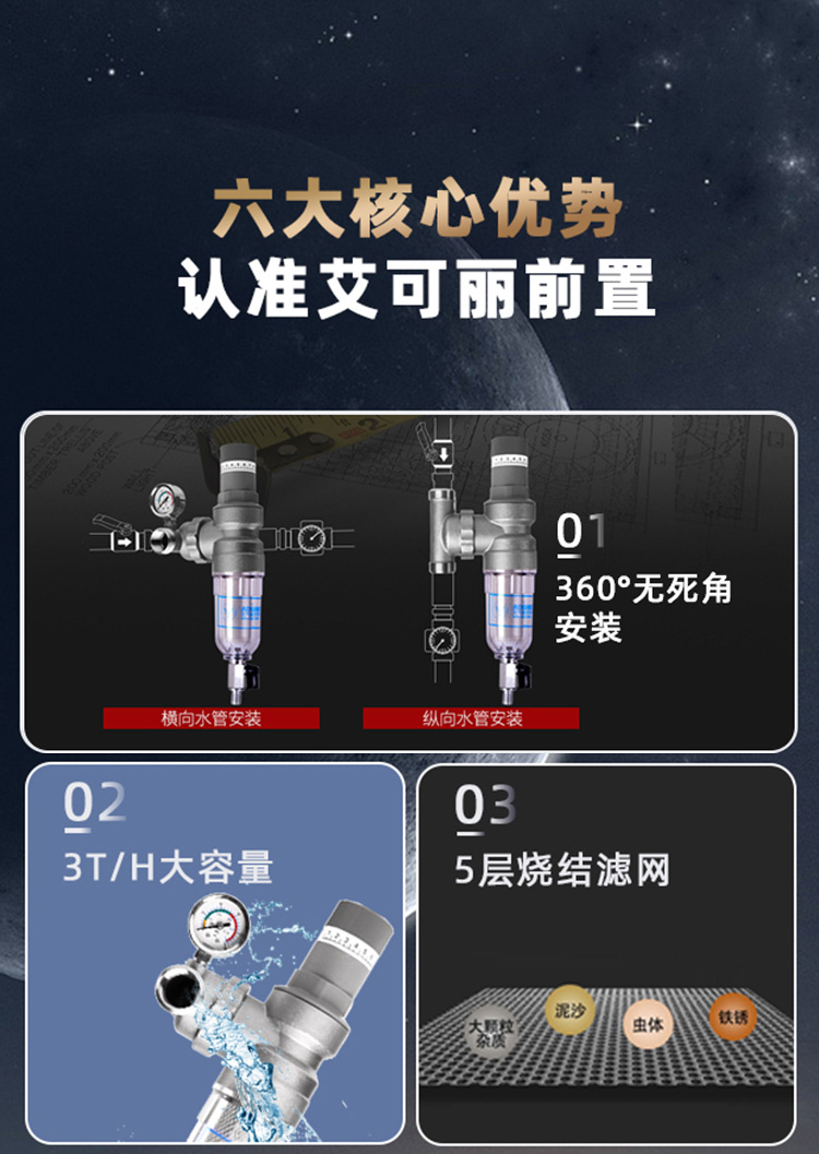 艾可丽阿瑞斯3前置过滤器家用不锈钢水龙头自来水直冲型净化器