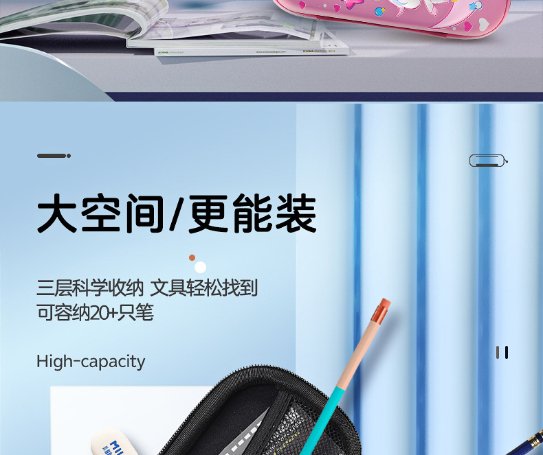 【文具收纳小能手 学习好伙伴】uime笔袋文具盒铅笔盒大容量3D立体多隔层小学生笔盒儿童学习用品