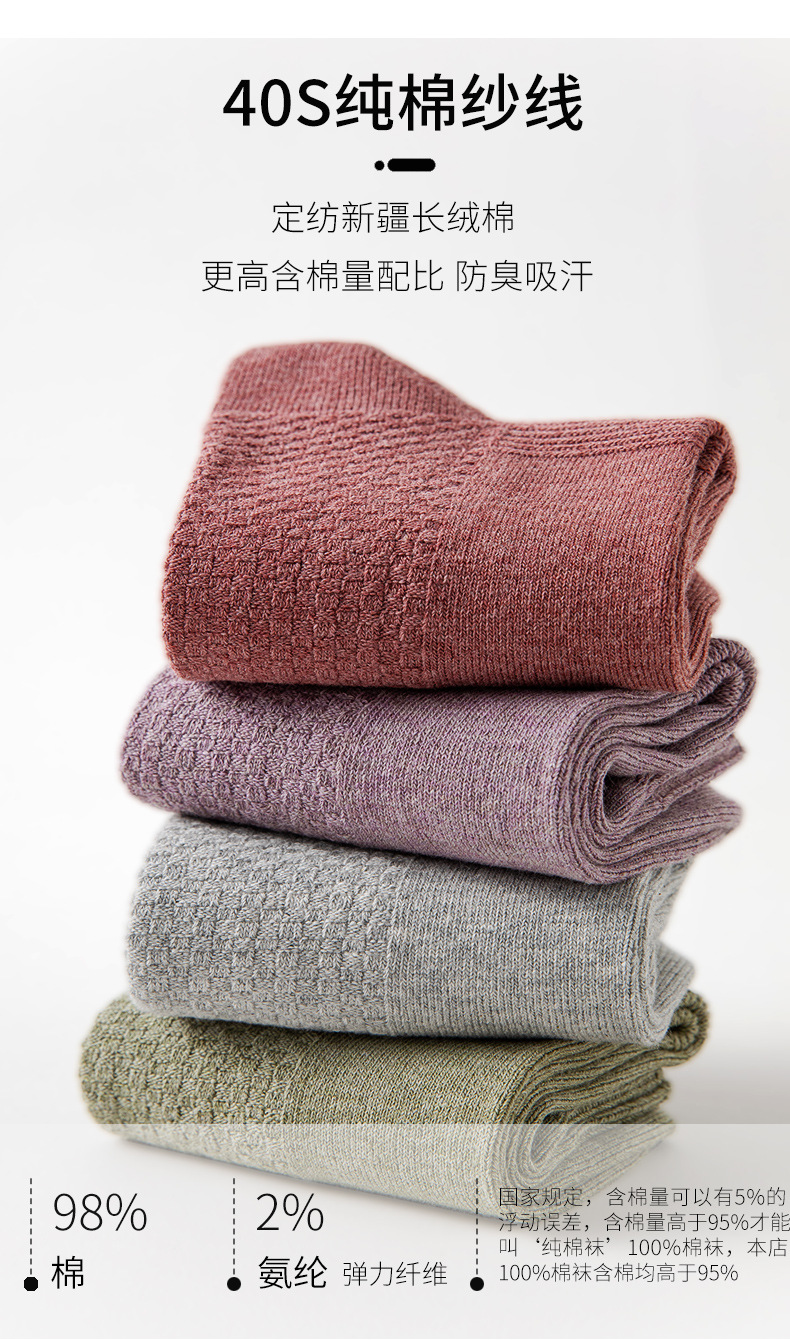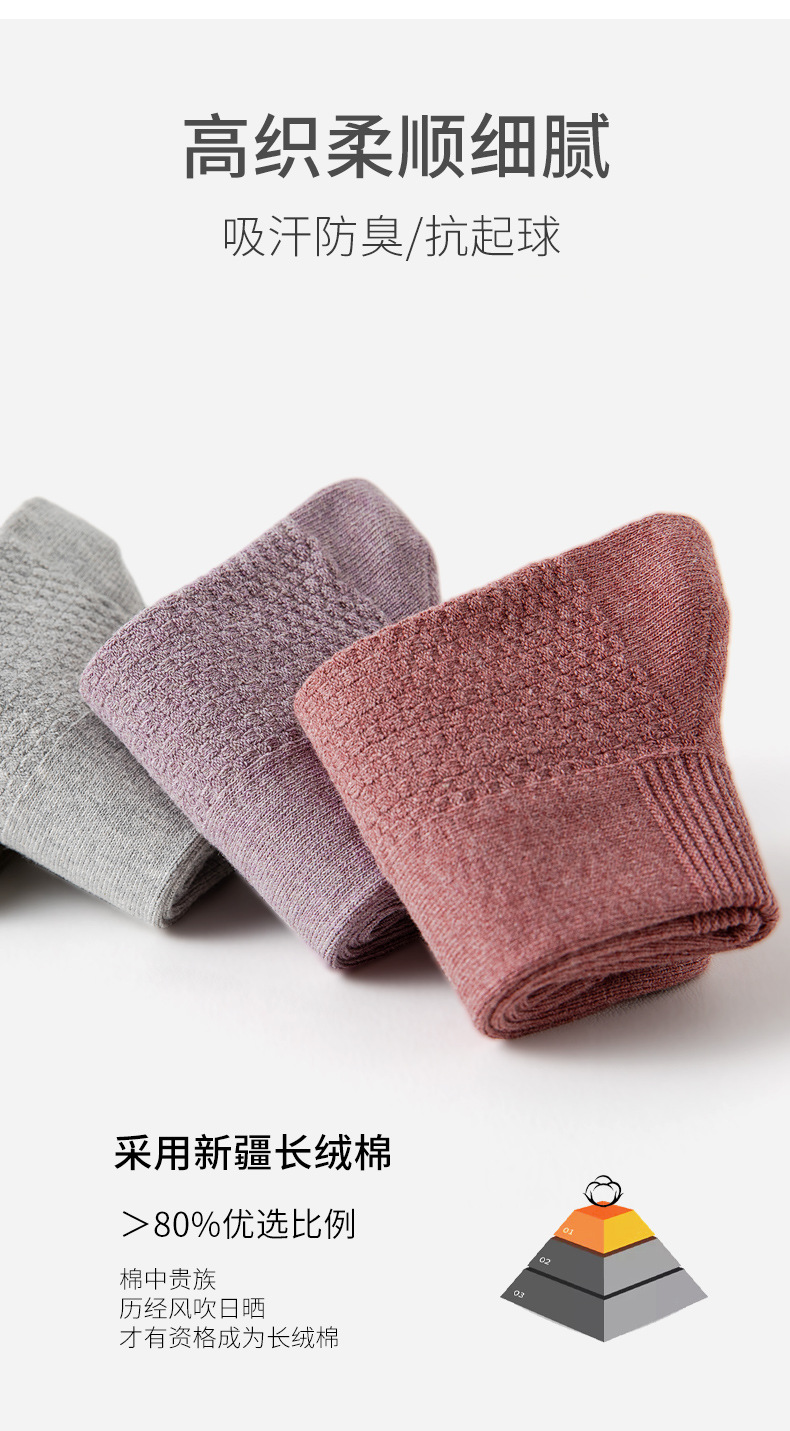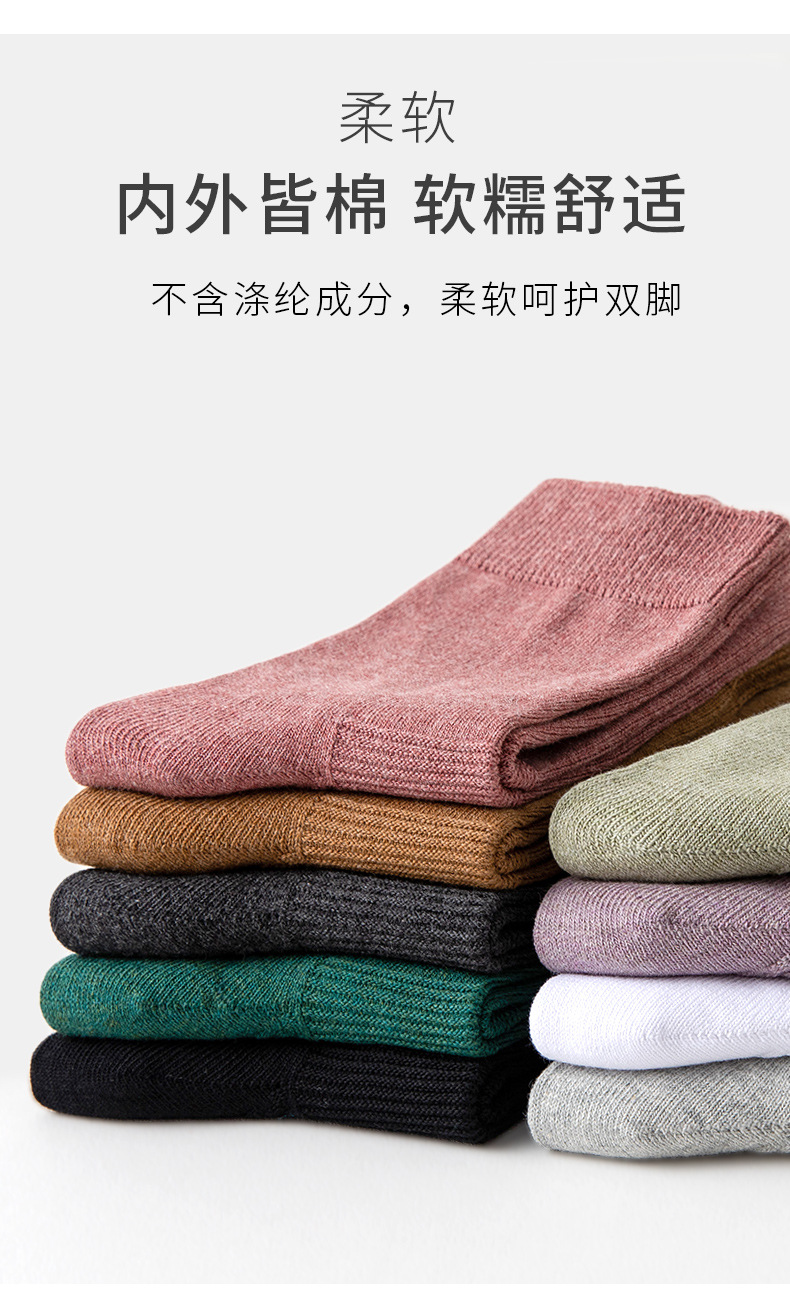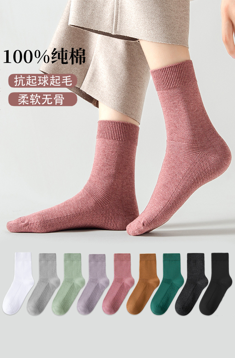 【内外皆棉 软糯舒适】秋冬纯棉女袜加厚 全棉纯色女士中筒袜子 新疆棉防臭独立包装