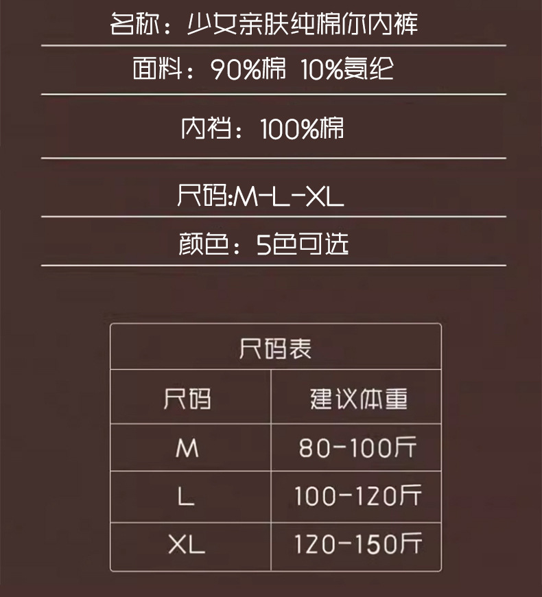 【超值5条装 柔软新疆棉~】女生全棉纯棉内裤女a类棉中腰抗菌纯棉裆女士大码内裤