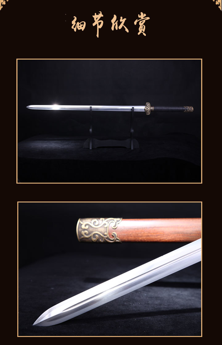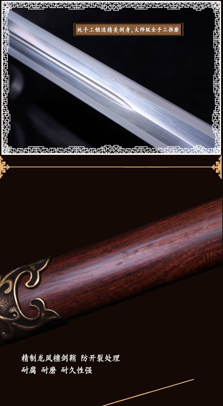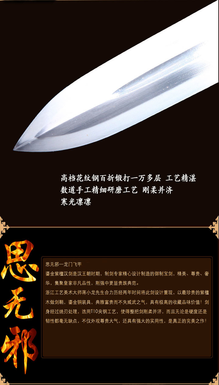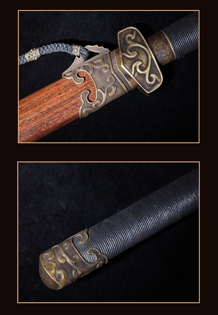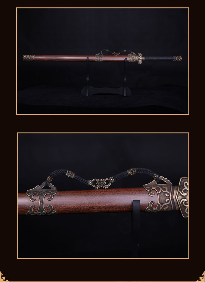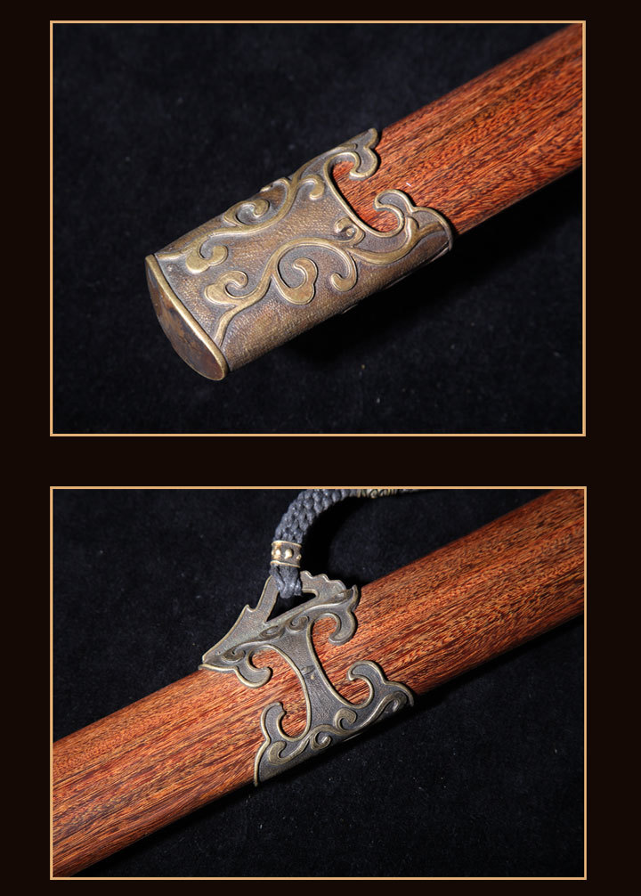 中华古汉剑 裱布漆鞘 百炼花纹钢 未开刃