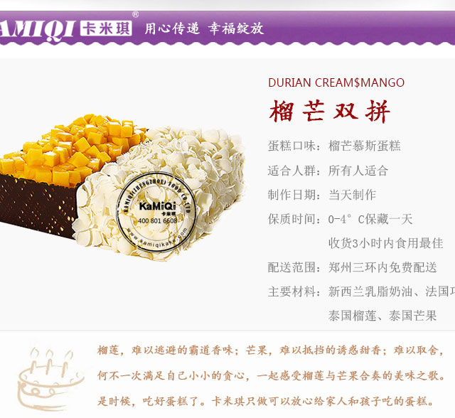 KAMIQI卡米琪,具有一颗天然匠心,追逐本真食材,呈现健康美食的高端蛋糕品牌。24小时自助订购平台,专业冷链配送新鲜到家。