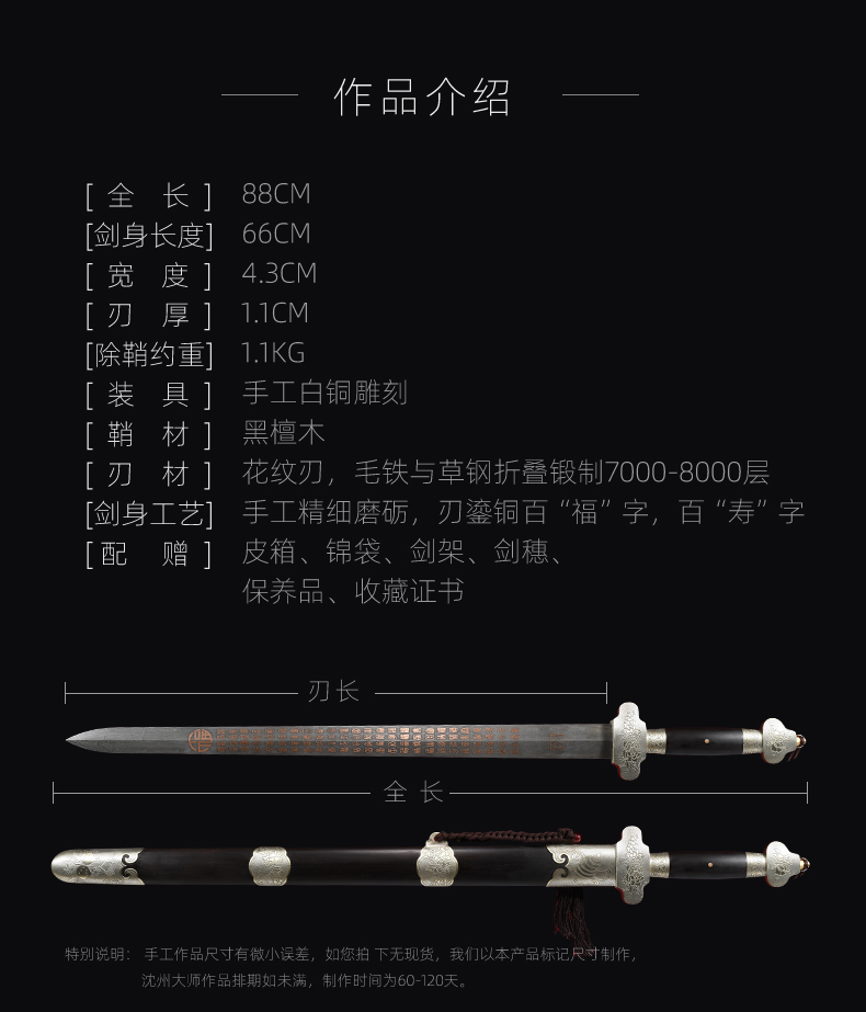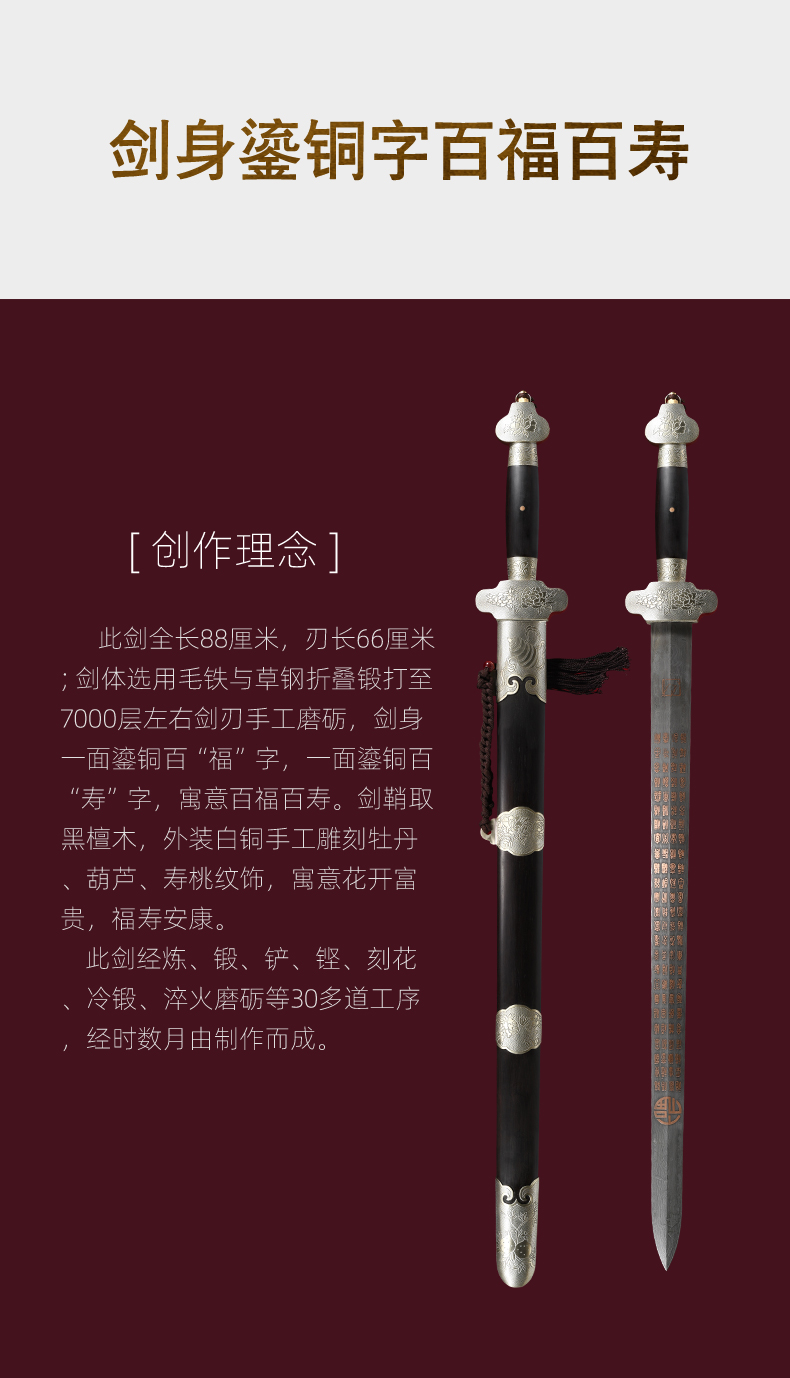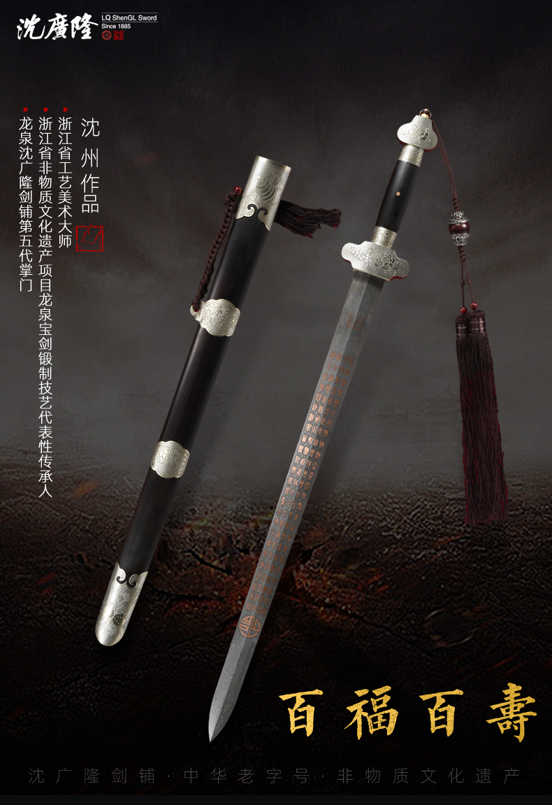 百福百寿剑 沈州作品 沈广隆剑铺 龙泉沈广隆宝剑手工剑收藏剑传统剑 sgl-2015 未开刃