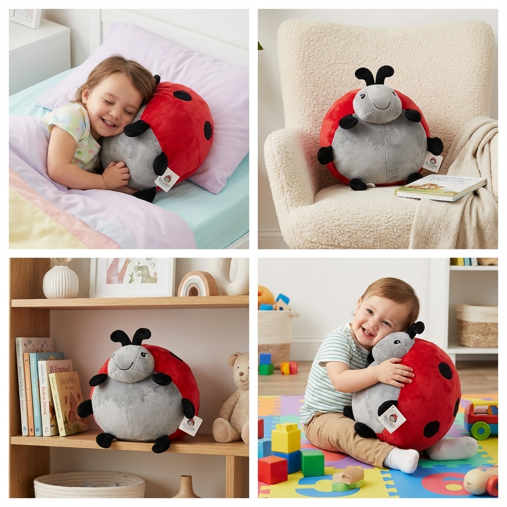 这是一个圆园的,超级可爱的,软软的、很适合宝宝的毛绒玩具-《暮光之城》系列瓢虫毛绒玩具。