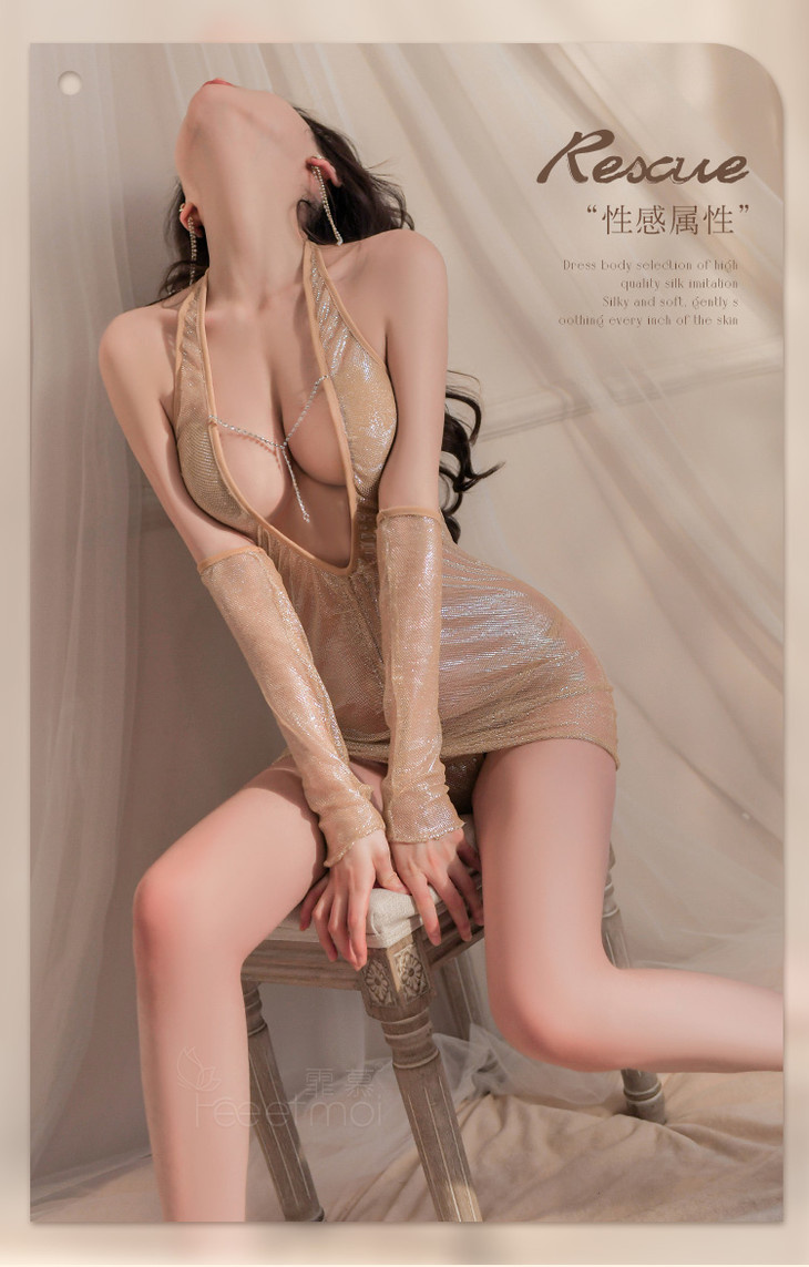 内衣新品 闪亮透身抽皱包臀夜店裙 号6729
