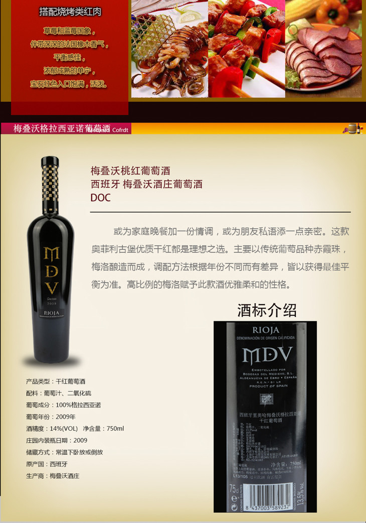 西班牙里奥哈梅叠沃格拉西亚诺干红葡萄酒