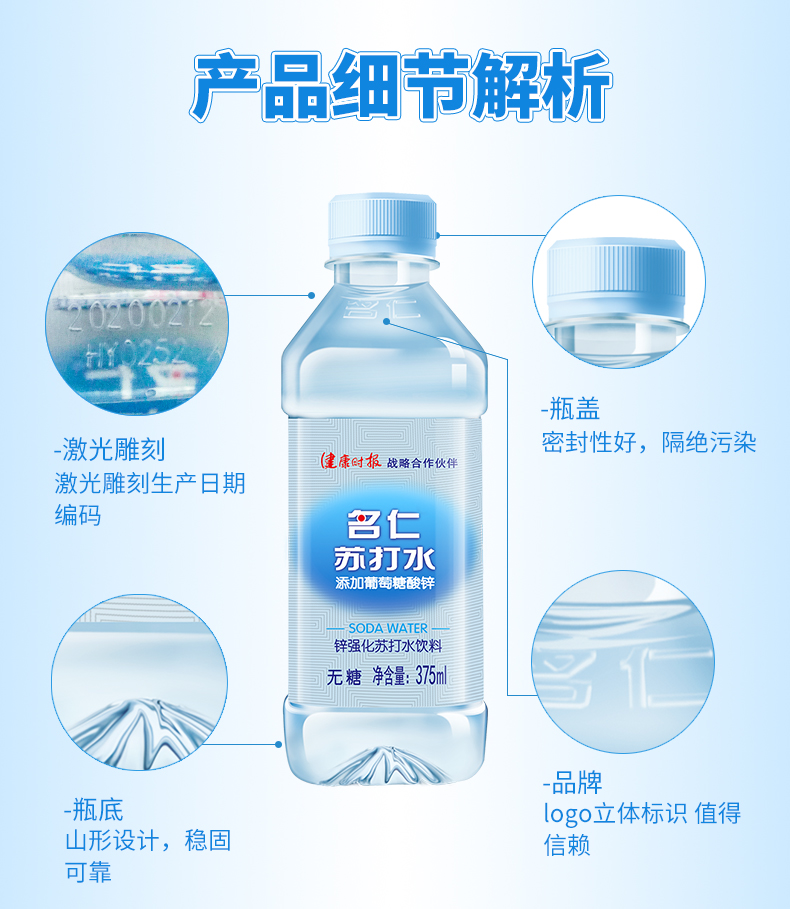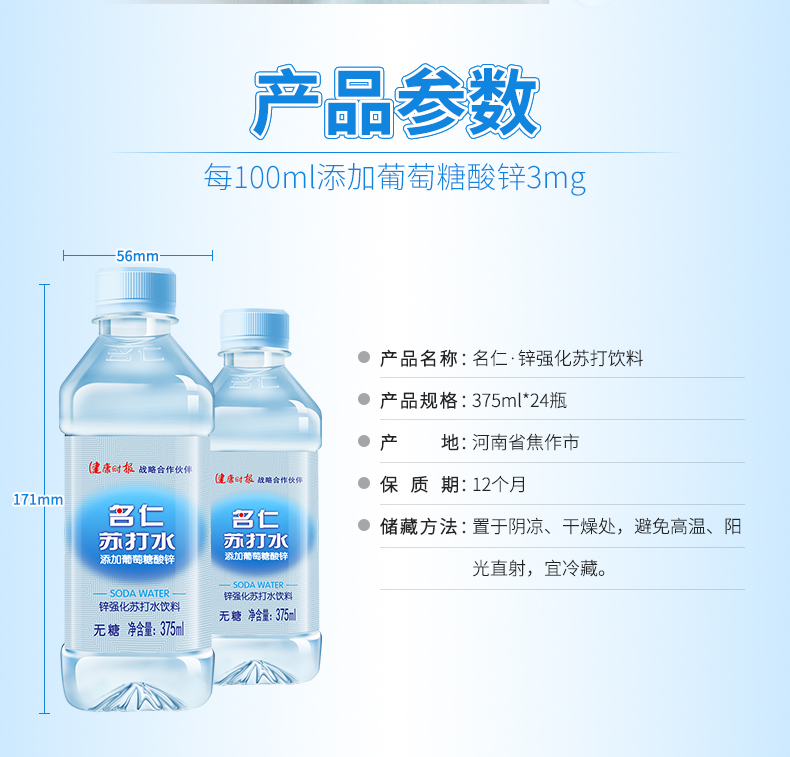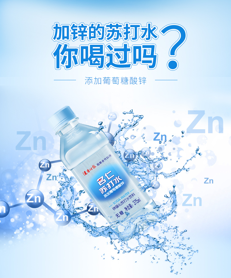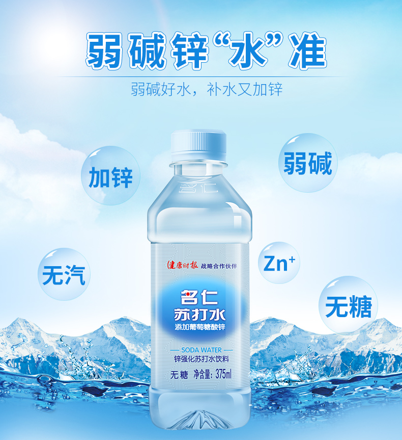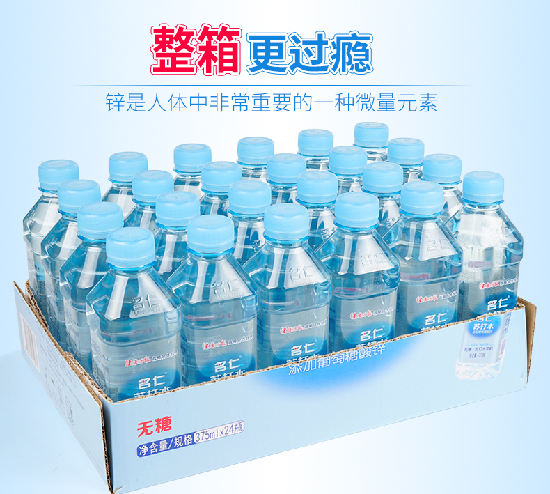 添加葡萄糖酸锌 名仁24瓶无糖无汽苏打水饮料