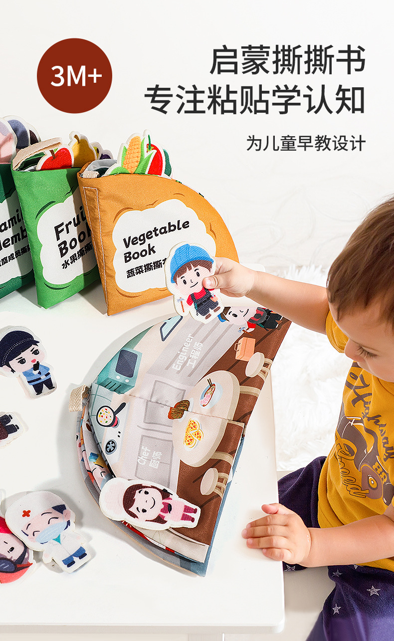 【4本!启蒙撕撕书 清洗不褪色】婴幼儿布书早教0-1岁宝宝响纸撕撕书可咬启蒙3-6个月玩具