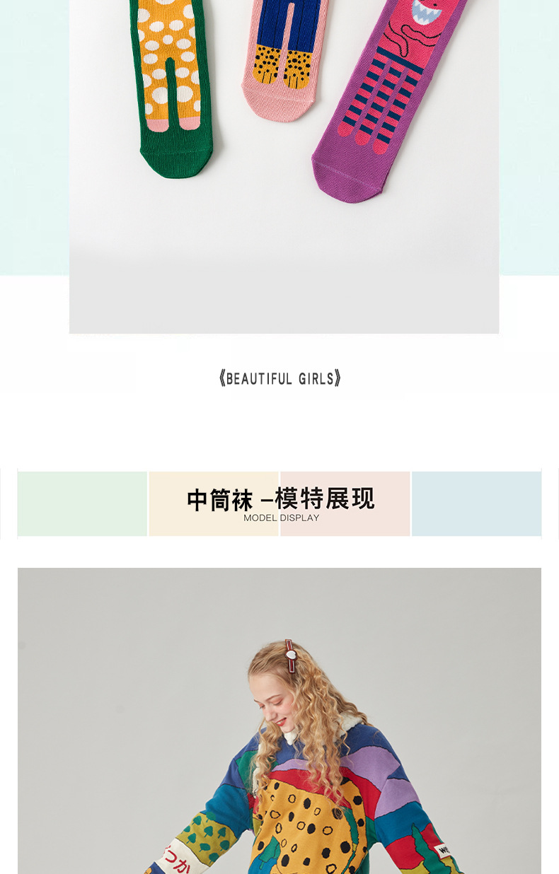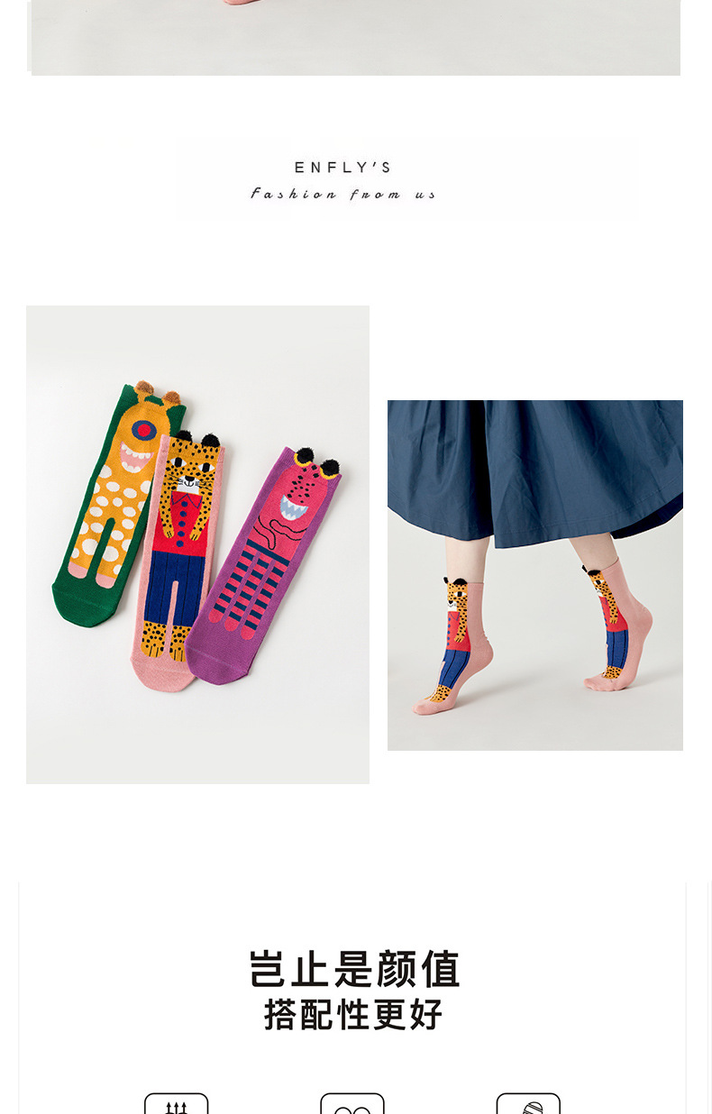 【岂止是颜值 搭配性更好】caramella秋冬新品女袜3双装怪兽中筒袜子女卡通ins袜子