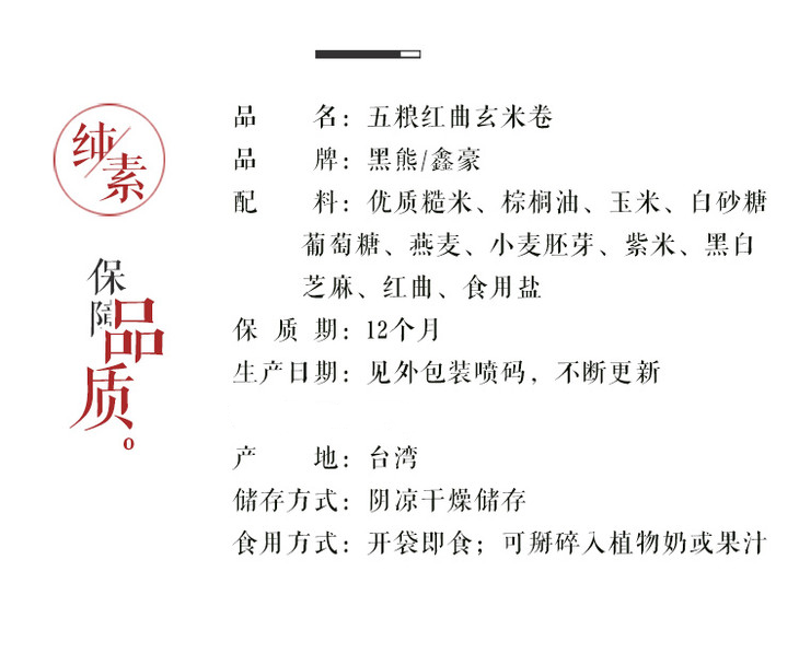 台湾黑熊五粮红曲玄米 净素 非油炸 养生能量谷物