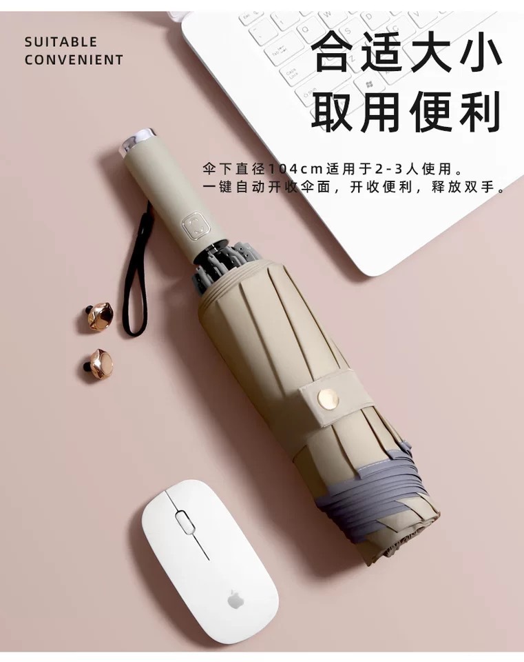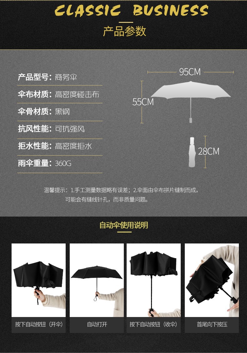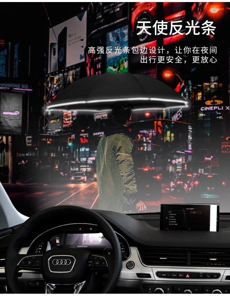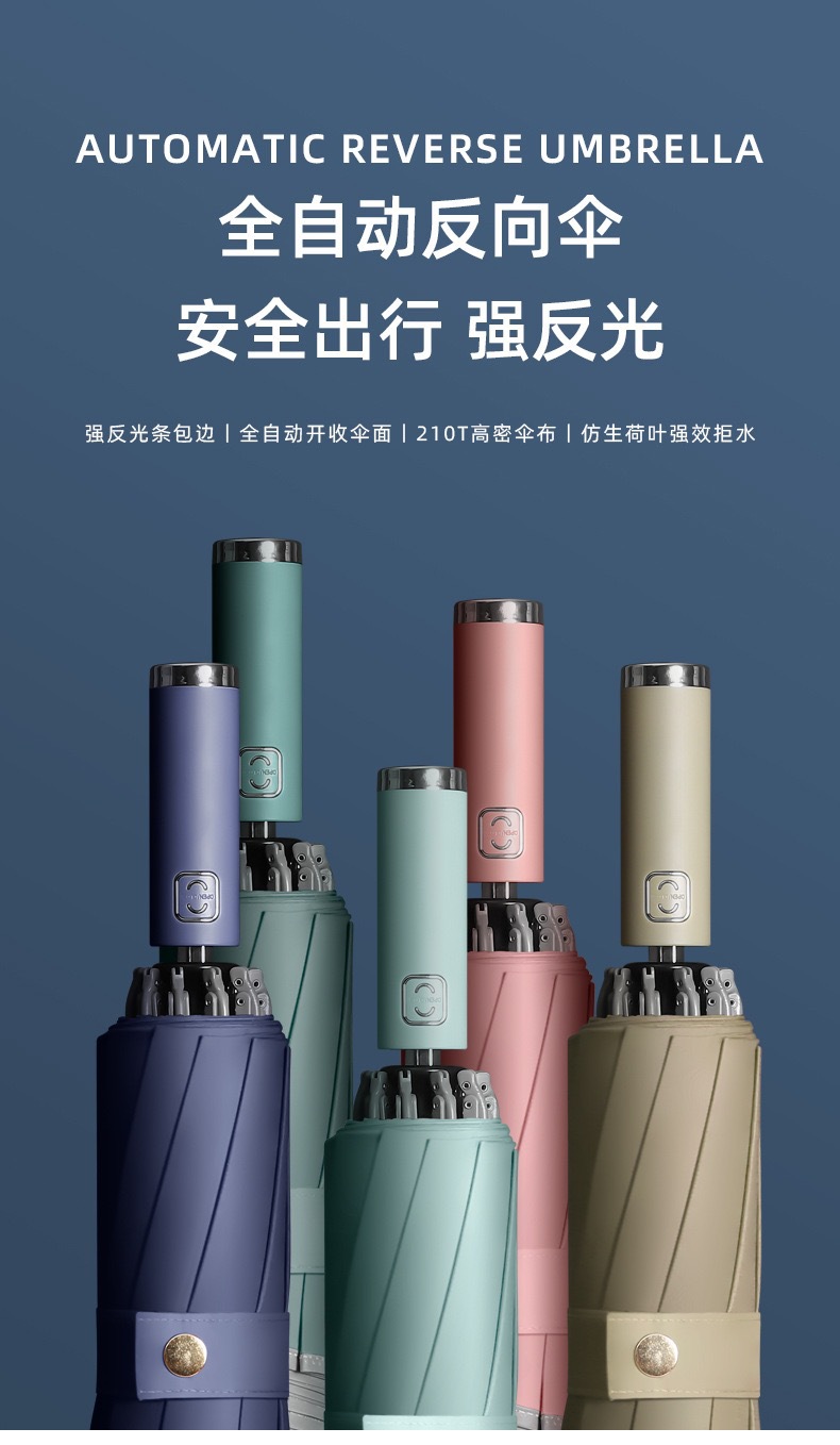 【全自动反向伞 强反光 便携安全】三折叠晴雨伞全自动大号太阳伞黑胶遮阳防晒防紫外线反向伞