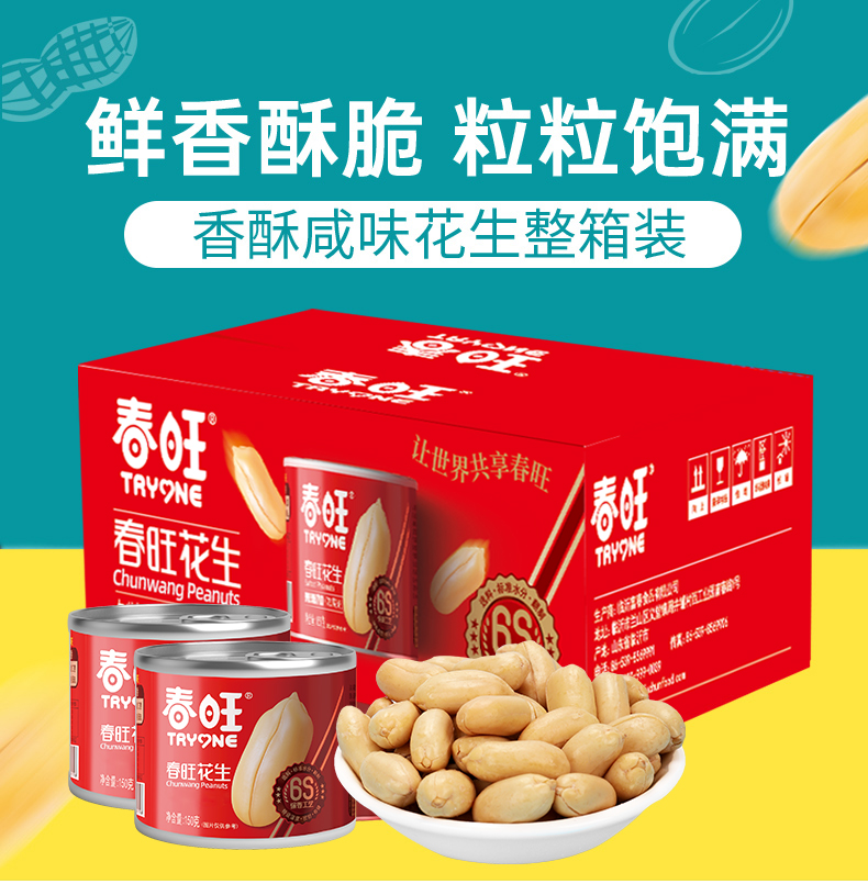 春旺咸味花生 罐装坚果去皮盐焗口味 休闲零食炒货淮盐花生豆24罐
