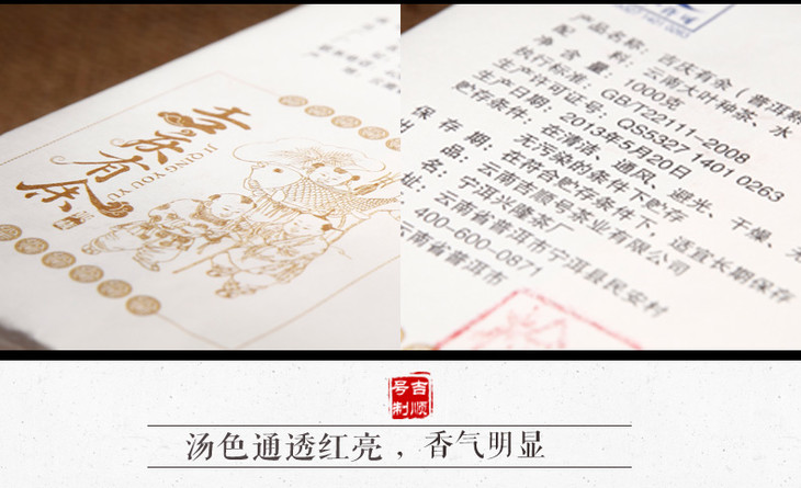 【干仓老茶】吉顺号云南普洱茶 2013年吉庆有余熟茶转1000g/片