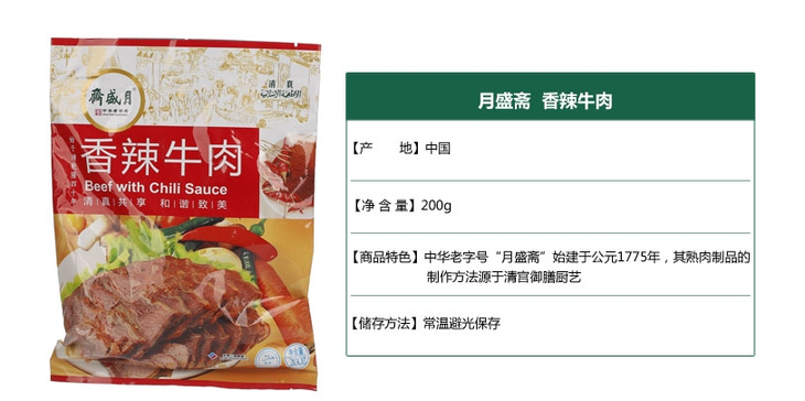 月盛斋酱肉 香辣牛肉200g(开袋即食)
