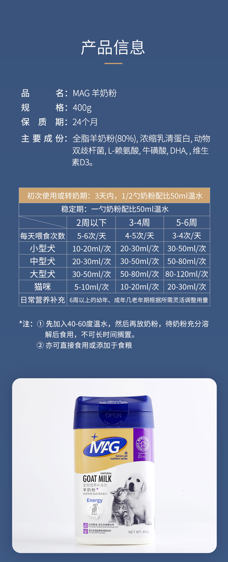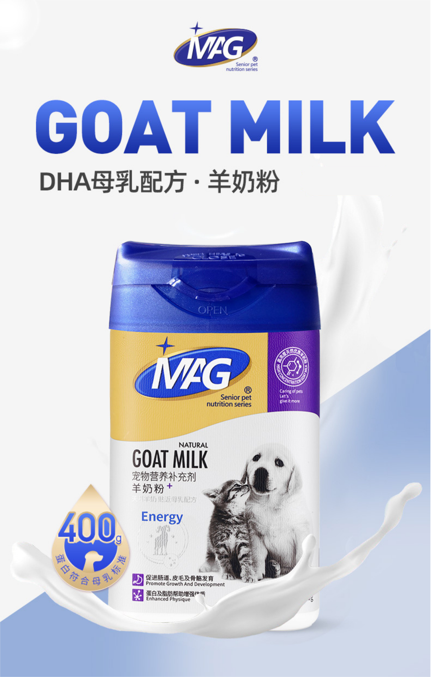 【MAG宠物母乳配方羊奶粉400g】全年龄段犬猫通用羊奶粉 增强体质 促进肠道蠕动