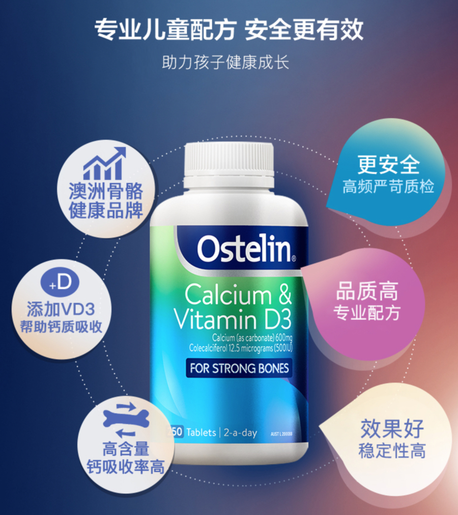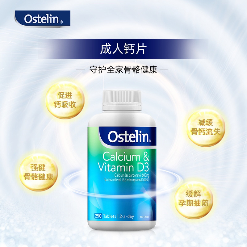 使用前请阅读标签。仅按说明指导使用。维生素补充剂不可替代均衡饮食。Ostelin仅适用于成人。