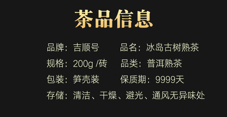 吉顺号冰岛茶砖普洱茶熟茶砖200克/片