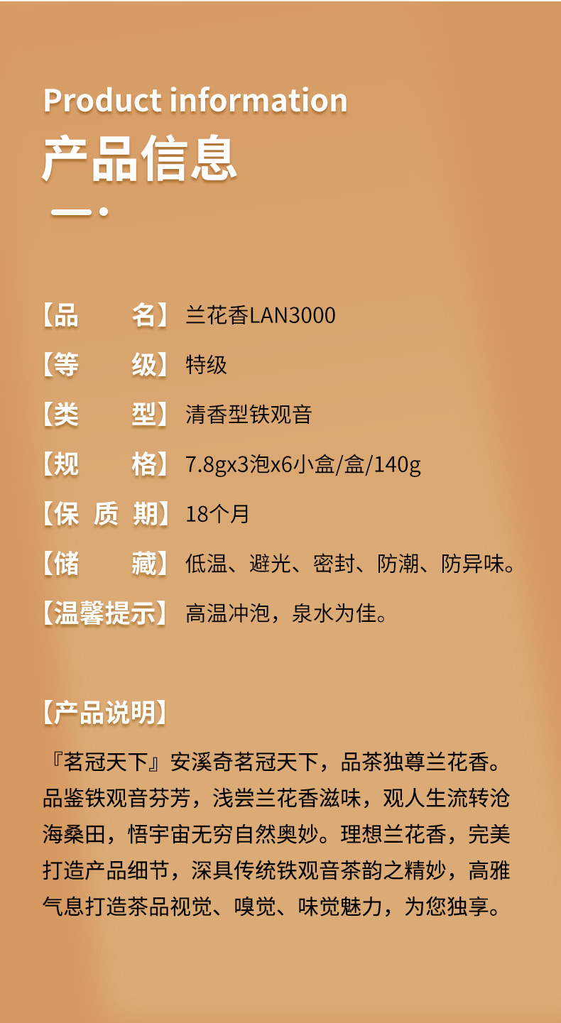 兰花香LAN3000 清香型铁观音 7.8gx3泡x6小盒/盒/140g 一级