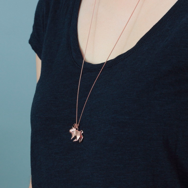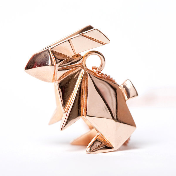 北京仓|ORIGAMI-Rabbit-折纸兔子 项链(毛衣链 )玫瑰金色[法国设计师]