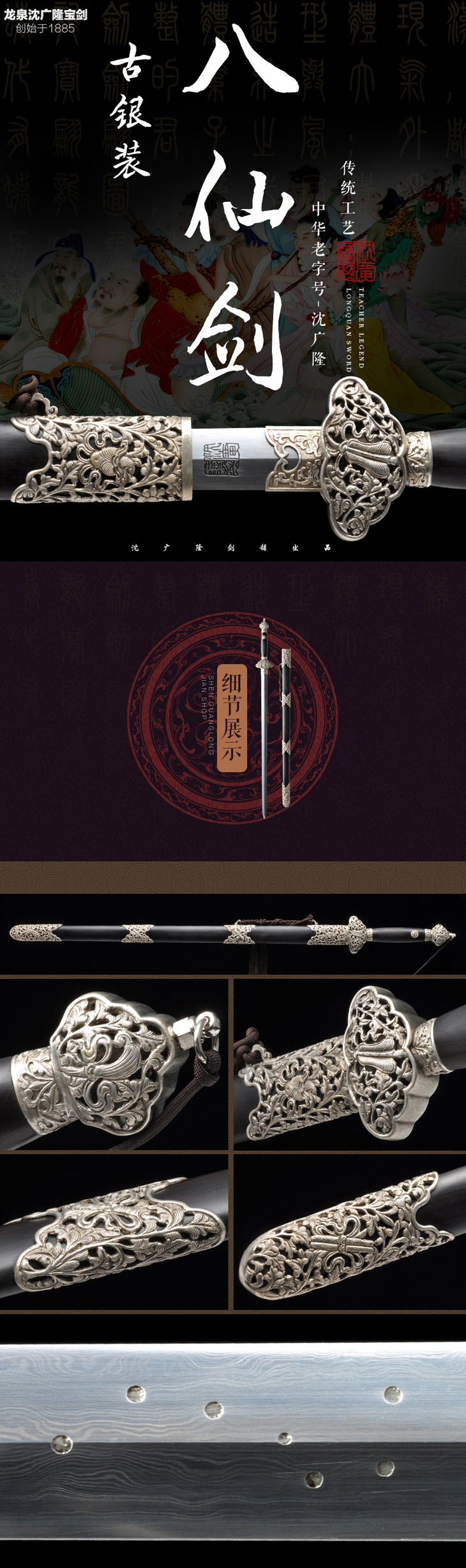 古银八仙剑 沈广隆剑铺龙泉沈广隆宝剑仿古剑手工传统剑收藏剑 sgl-3013 未开刃