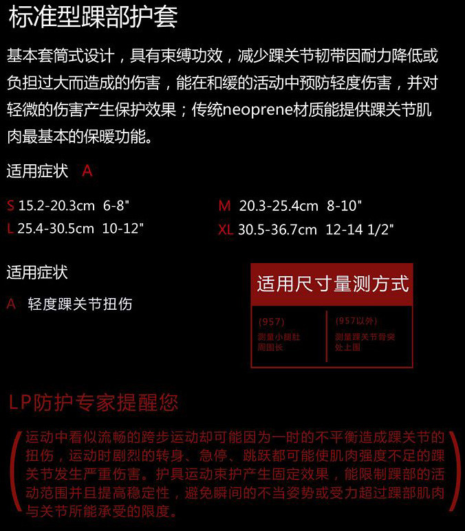 LP护具 标准型踝部护套 LP704 舒适透气 扭伤防护
