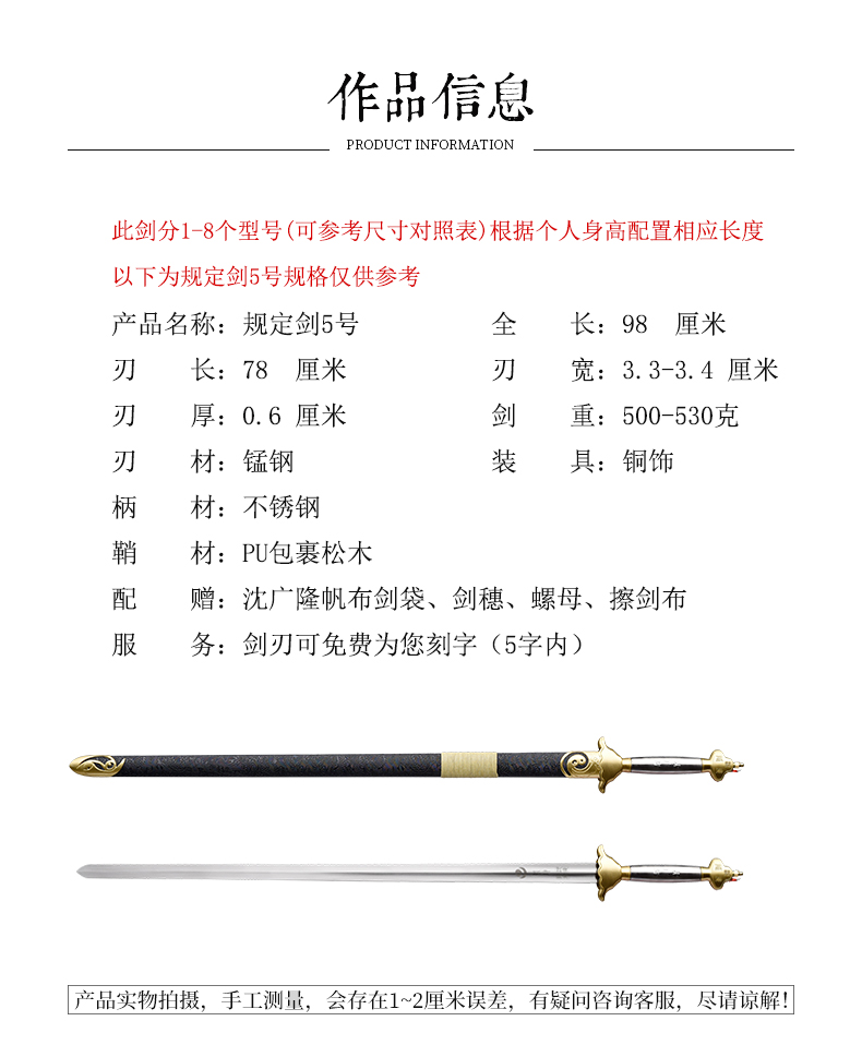 武术套路规定剑 竞赛剑 中国武术锦标赛指定剑 沈广隆武术剑软剑 sgl-8001 未开刃