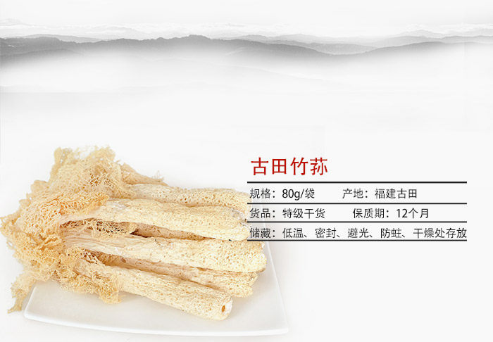 古田优质竹荪80克/包 煲汤香气馥郁,烩制脆嫩爽口