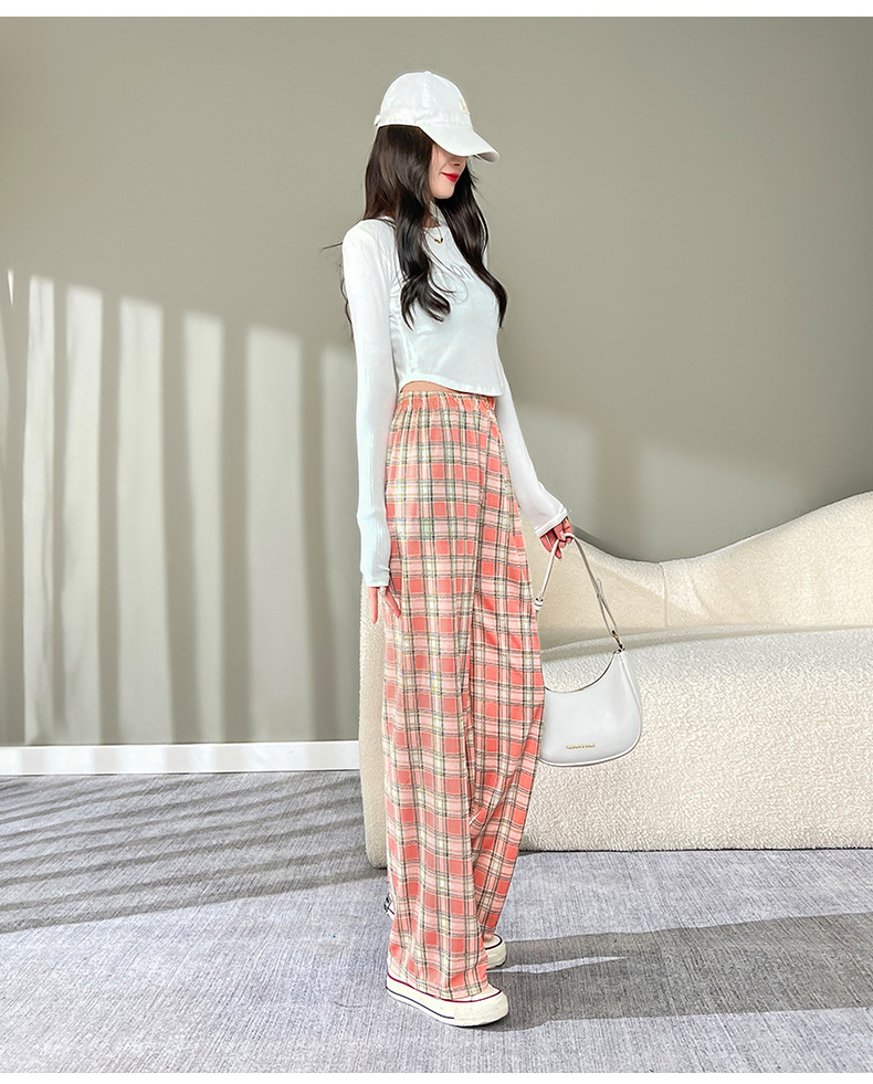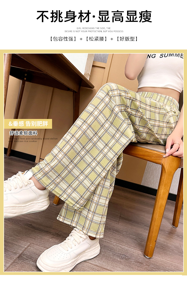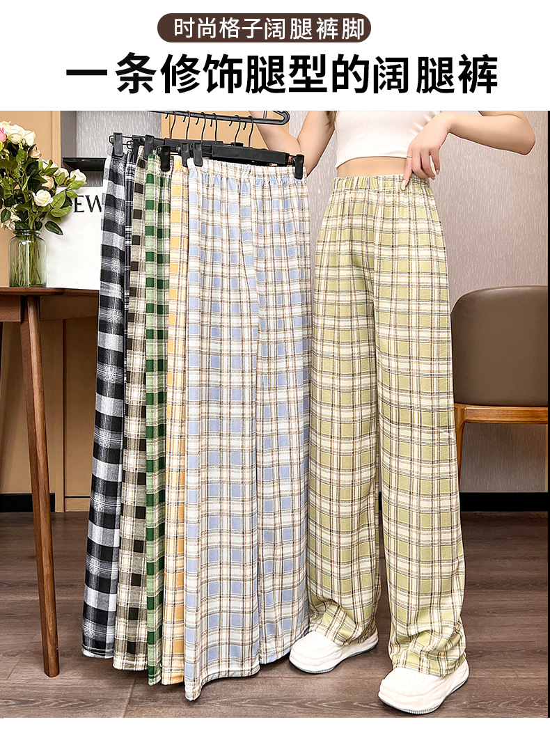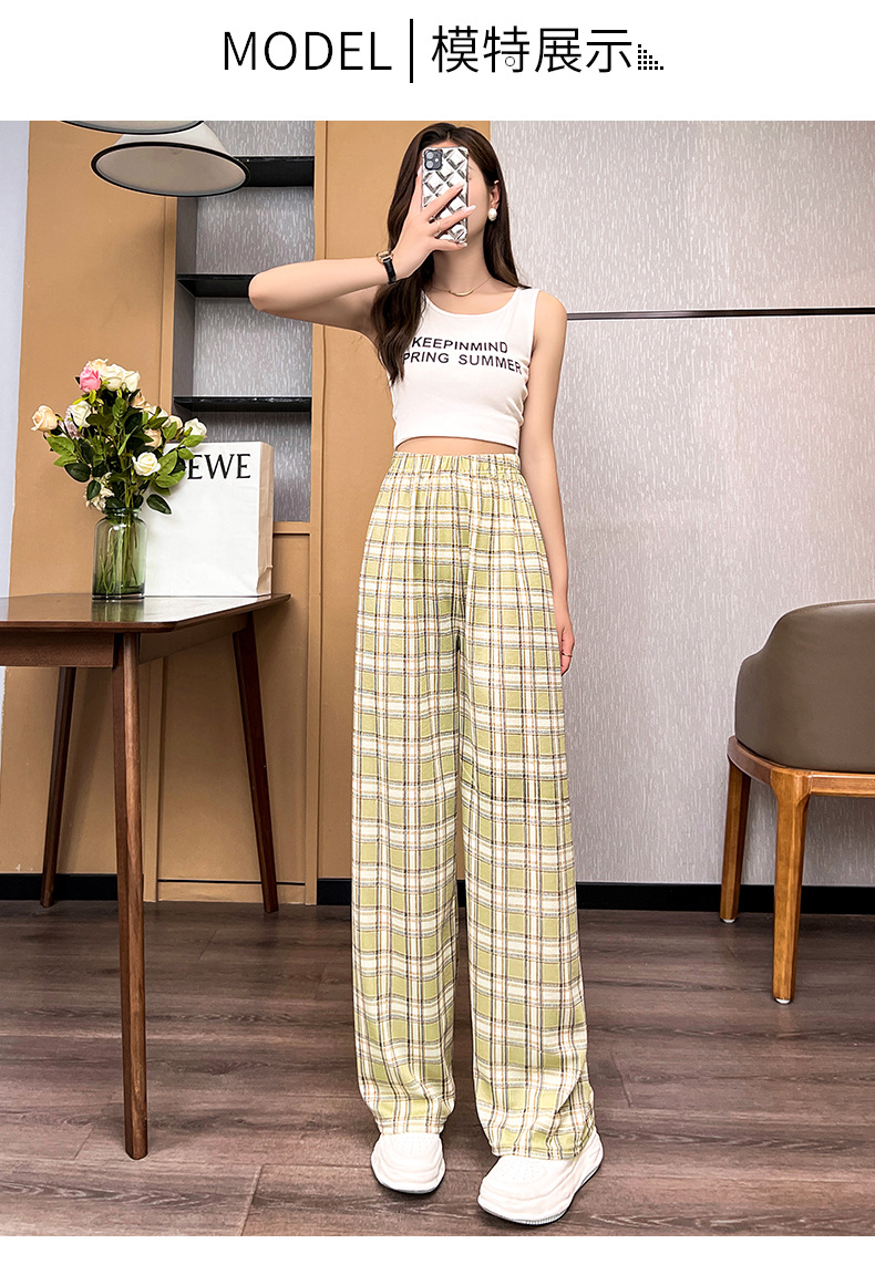 【限时特价!清凉一夏】修饰腿型 格子裤子女夏季薄款宽松直筒显瘦百搭休闲裤高腰垂感新款阔腿裤女