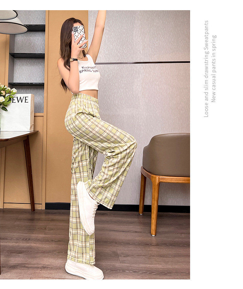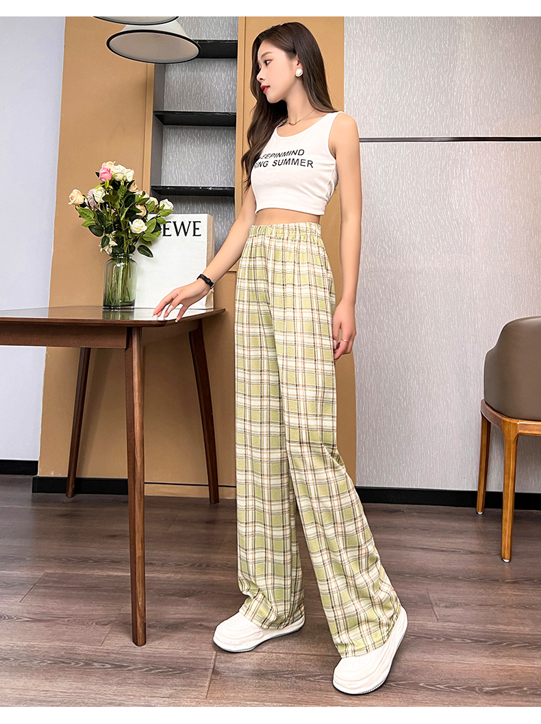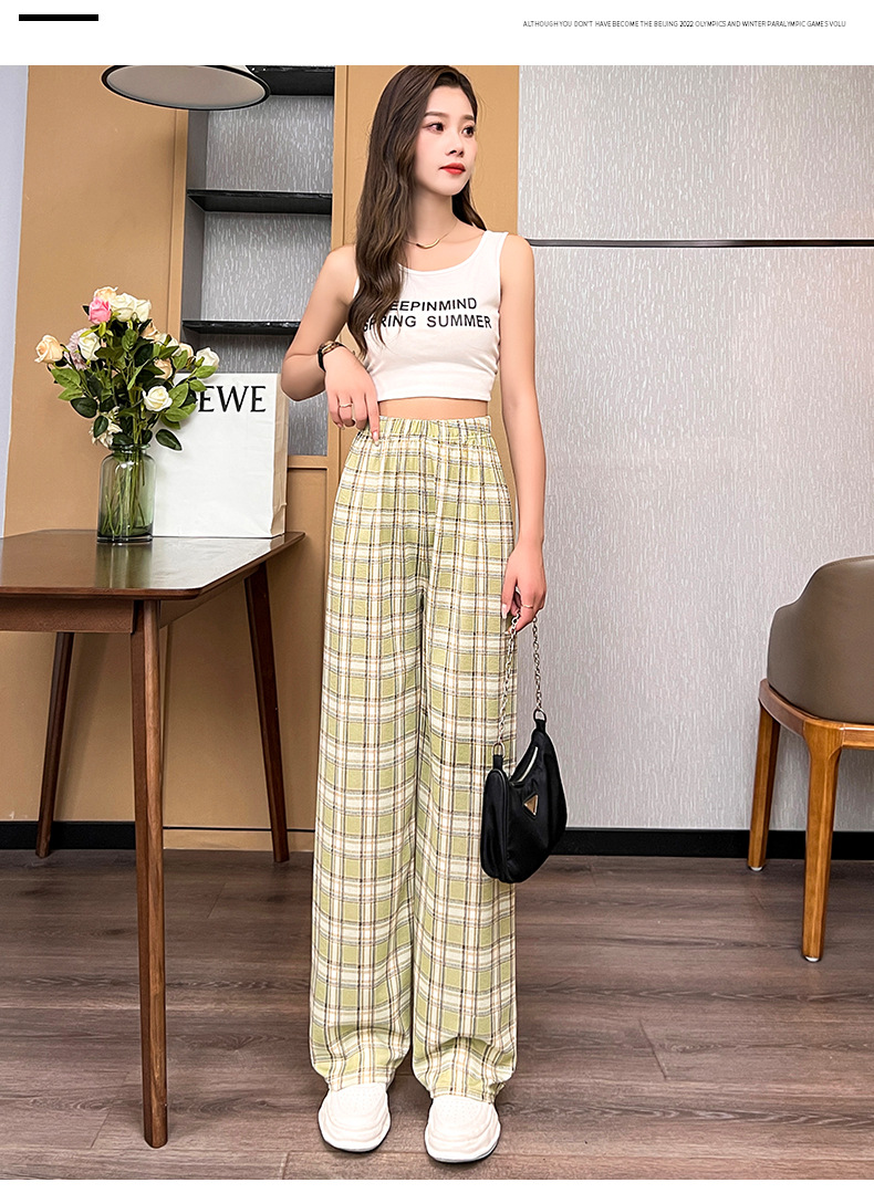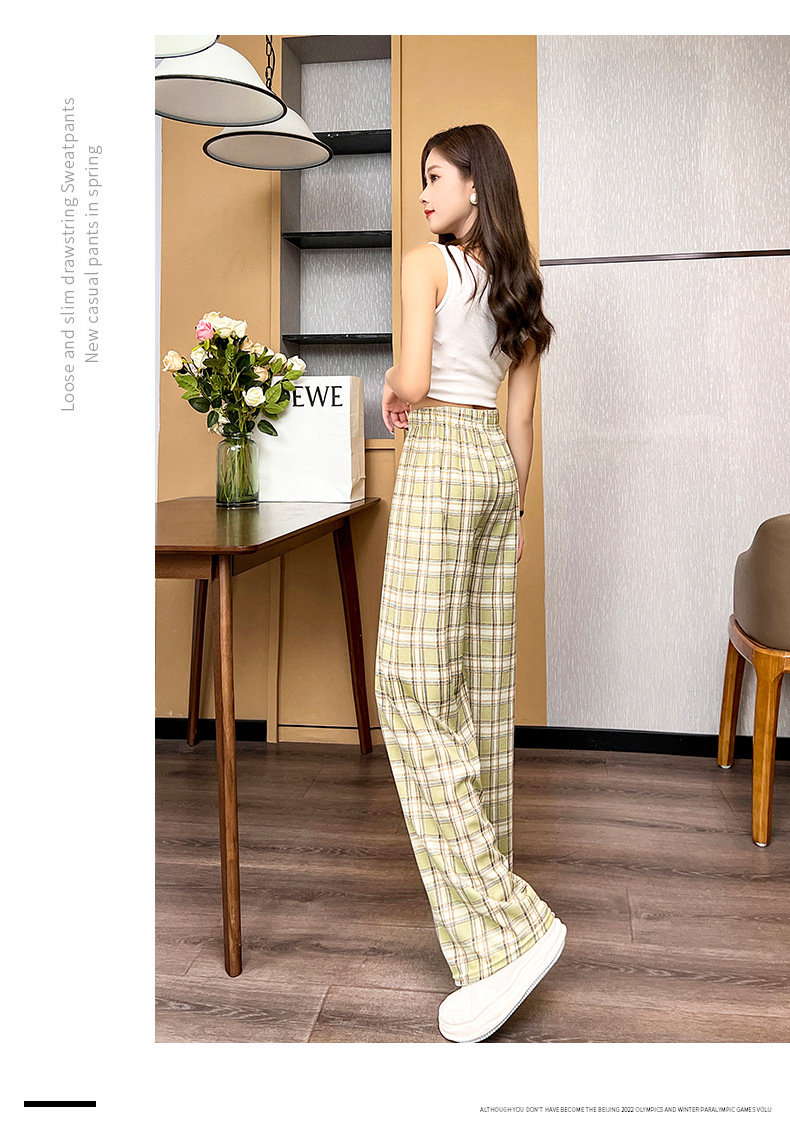 【限时特价!清凉一夏】修饰腿型 格子裤子女夏季薄款宽松直筒显瘦百搭休闲裤高腰垂感新款阔腿裤女