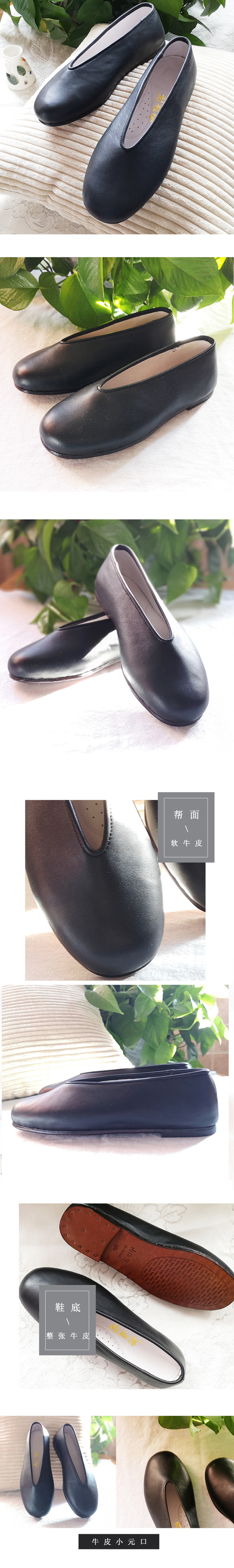 内联升男鞋手工单鞋皮底春秋单鞋牛皮缝制皮底小元口皮便鞋7115