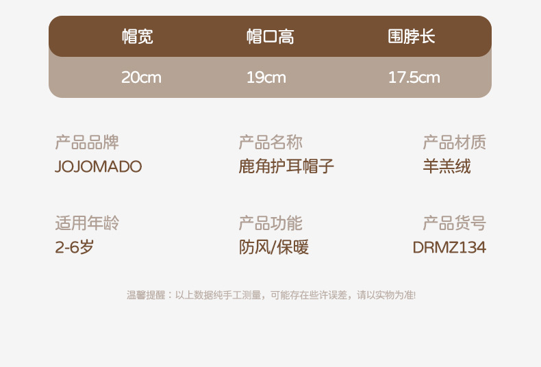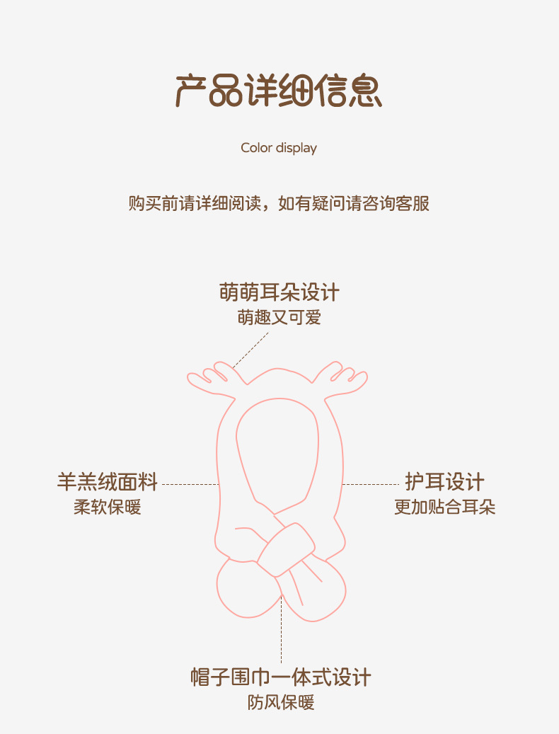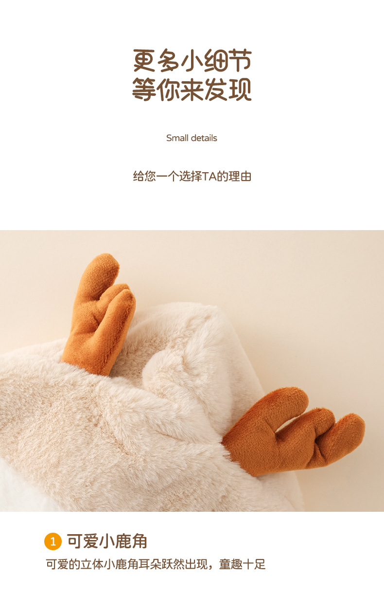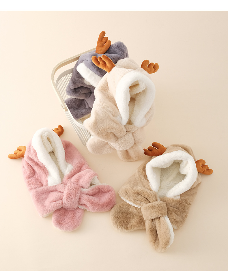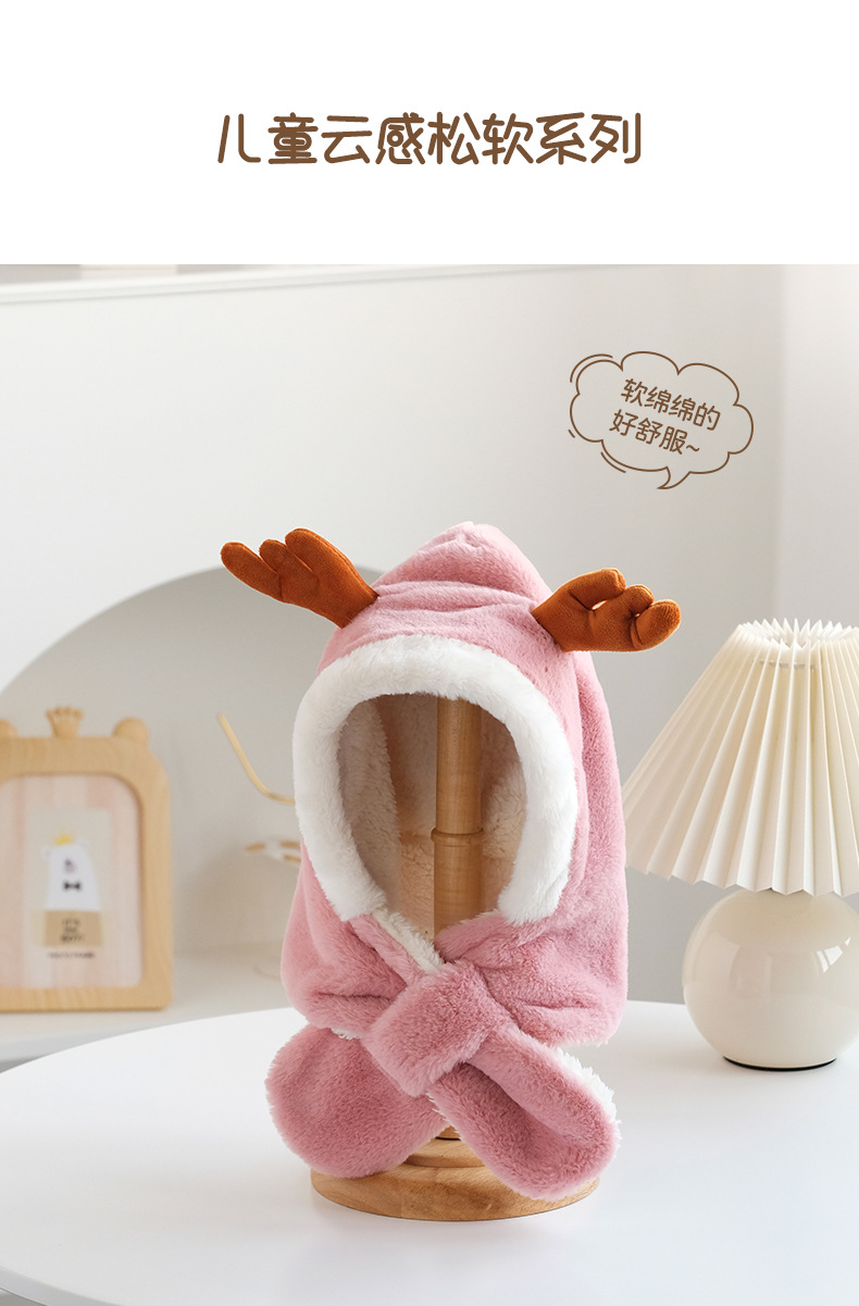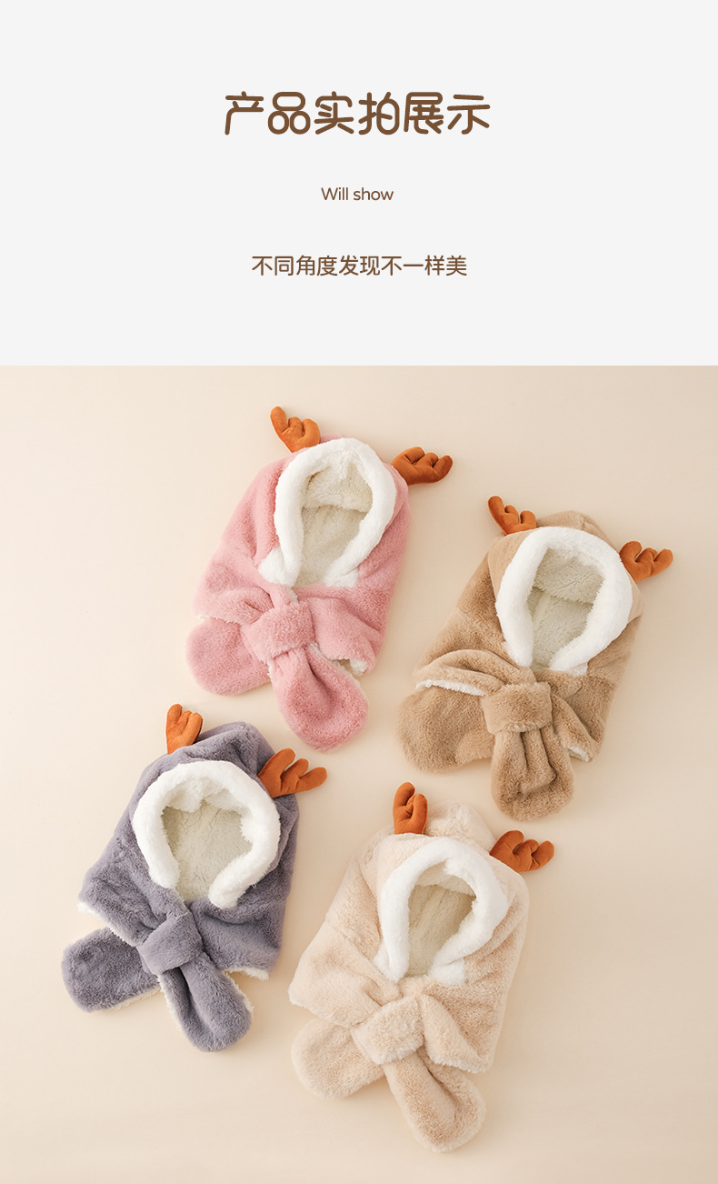 【云感松软 蓄热锁温】秋冬新品韩国卡通鹿角男童女童帽子宝宝毛绒围巾一体帽
